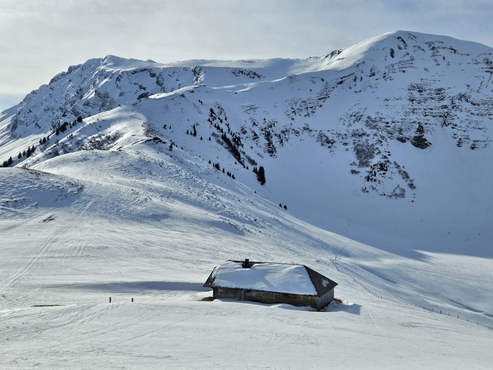 Schnee hat es genug, allerdings halten sich die Abfahrtsfreuden unter 1600m in Grenzen. Unbequemer Bruchharsch, teilweise sind pistenähnliche Verhältnisse, machbar halt.
