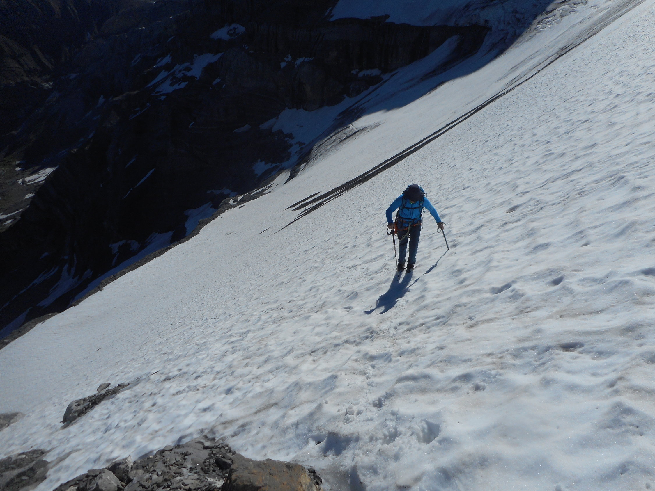 Einsamer, wilder und grossartiger Aufstieg unter der Nordwand vom Les Diablerets 3210m. Der Tete Ronde liegt nordöstlich vom Les Diablerets, direkt über dem Col du Pillon 1546m.