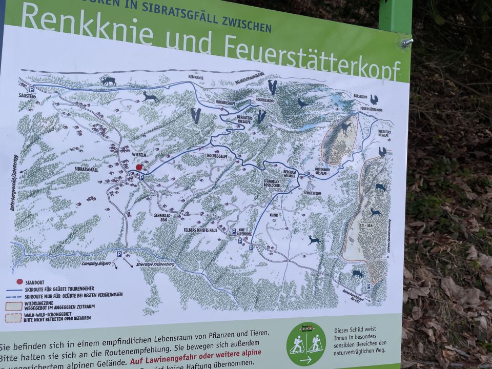 Am Morgen deponierte ich vor Tourenbeginn mein Mini-Radl beim Wirtshaus Waldrast am Sausteigpass, so dass ich von dort nach Sibratsgefäll es nur noch herunterrollen lassen brauchte. Am Gipfel traf ein Wanderer vom Sausteig kommend zeitgleich mit mir ein. Im Abstieg kamen mir 3 Personen dann entgegen.
