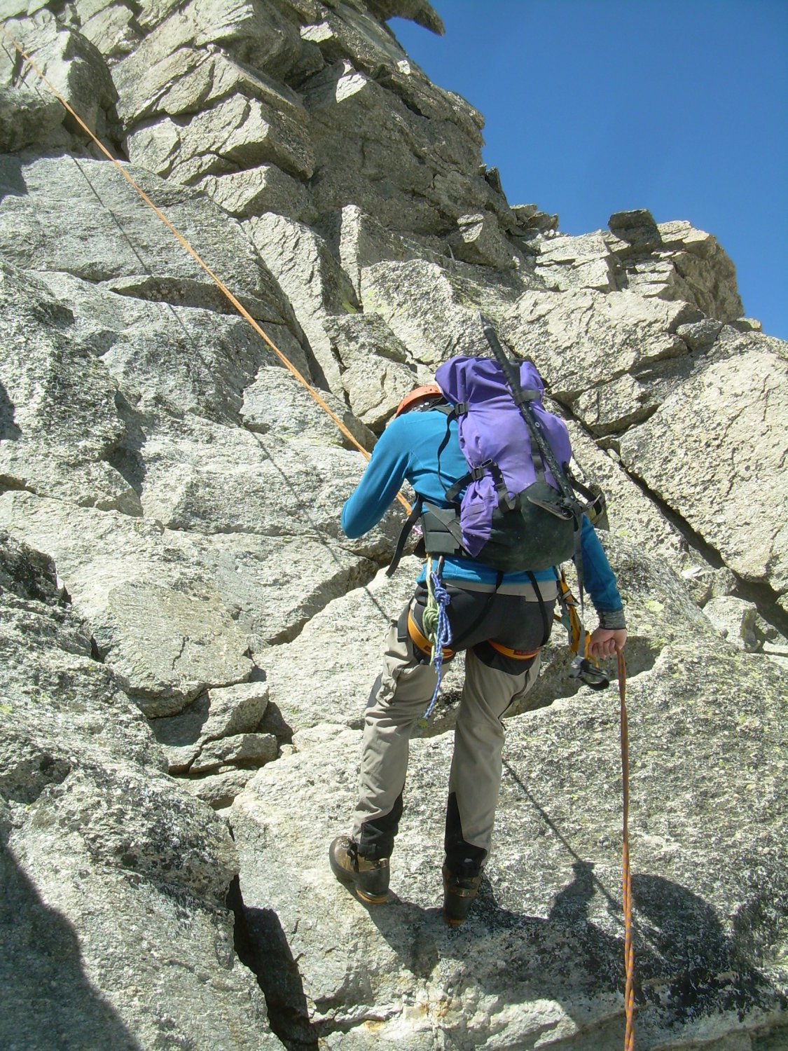 Apert zusehends aus. Vorsicht auf Steinschlag, insbesondere falls mehrere Seilschaften unterwegs sein sollten.