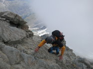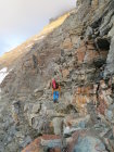 Wie bereits in einem anderen Tourenbericht erklärt, waren es gute Verhältnisse. Kein Schnee/Eis. Wir haben Steigeisen und Pickel dann auf dem Solvaybiwak gelassen, als wir einer absteigenden Seilschaft begegnet sind, die uns gesagt hat, wir bräuchten nichts.