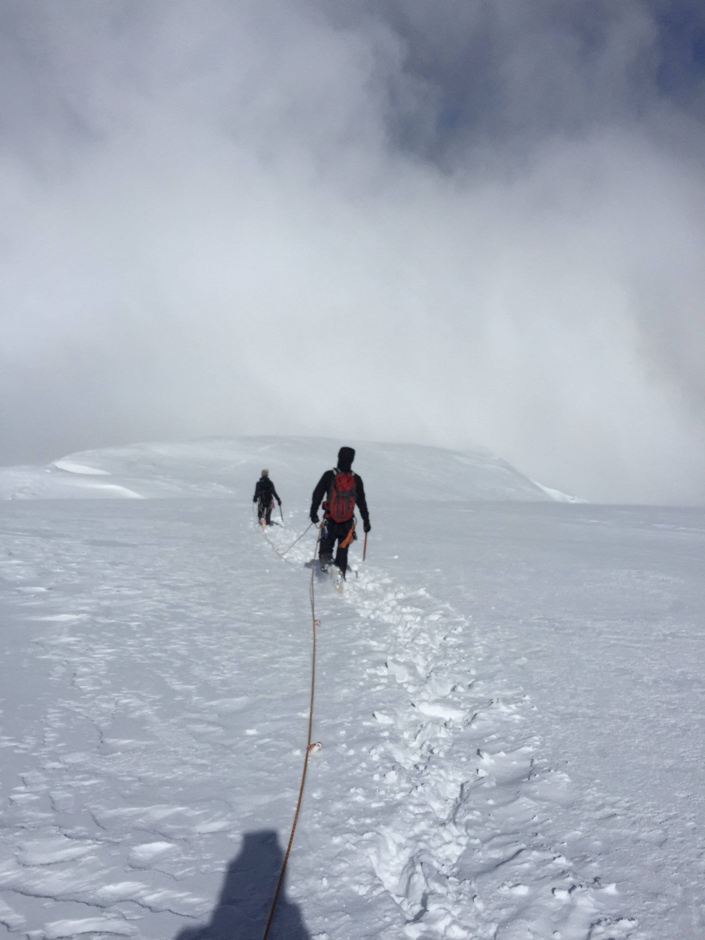 Am Samstag auf dem Hohlaubgletscher durften zum Üben alle nochmals den Schweizer Flaschenzug aufbauen.