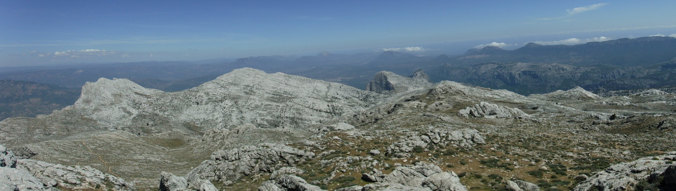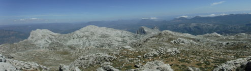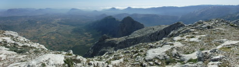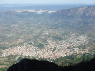 Faszinierende Tiefblicke vom Mte. Corrasi hinab zu den Bergstädtchen Oliena, Mamoiada und Orgosolo. Fernsicht bis Pedra Mugrones im Osten und zur Punta Cusidore. Auch die Isola Tavolara vor Olbia sieht man im Norden.
