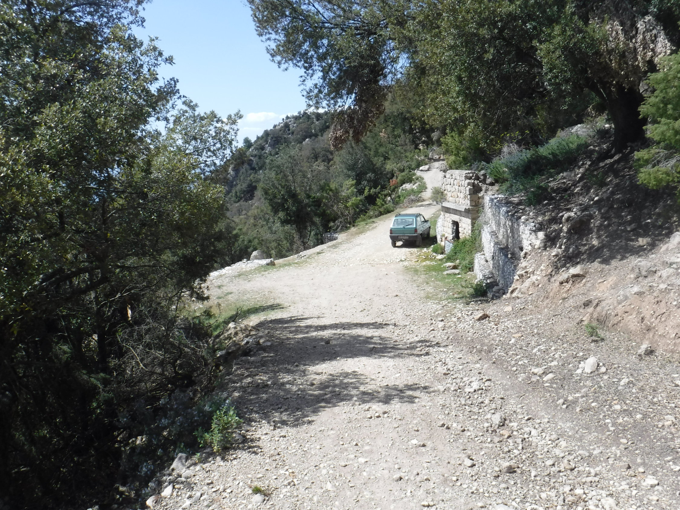 Bei solchen unbefestigten „Straßenverhältnissen“ ist der Fiat Panda mit Allradantrieb das geeignete Fahrzeug. Ein Pärchen überholte mich Abkürzer nutzenden Fußgänger damit unterhalb des Passes Scala e Pradu.