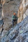 Fels war vor allem in den ersten Seillängen noch nass und tlw. sehr glitschig. Allenfalls macht einer späterer Einstieg Sinn wenn die Sonne die nassen Flechten etwas getrocknet hat. Mein Begleiter ist in Bergschuhen geklettert, ich ab der 3 Seillänge mit Finken, hat das Ganze schon angenehmer gemacht. Kletterzeit 6h