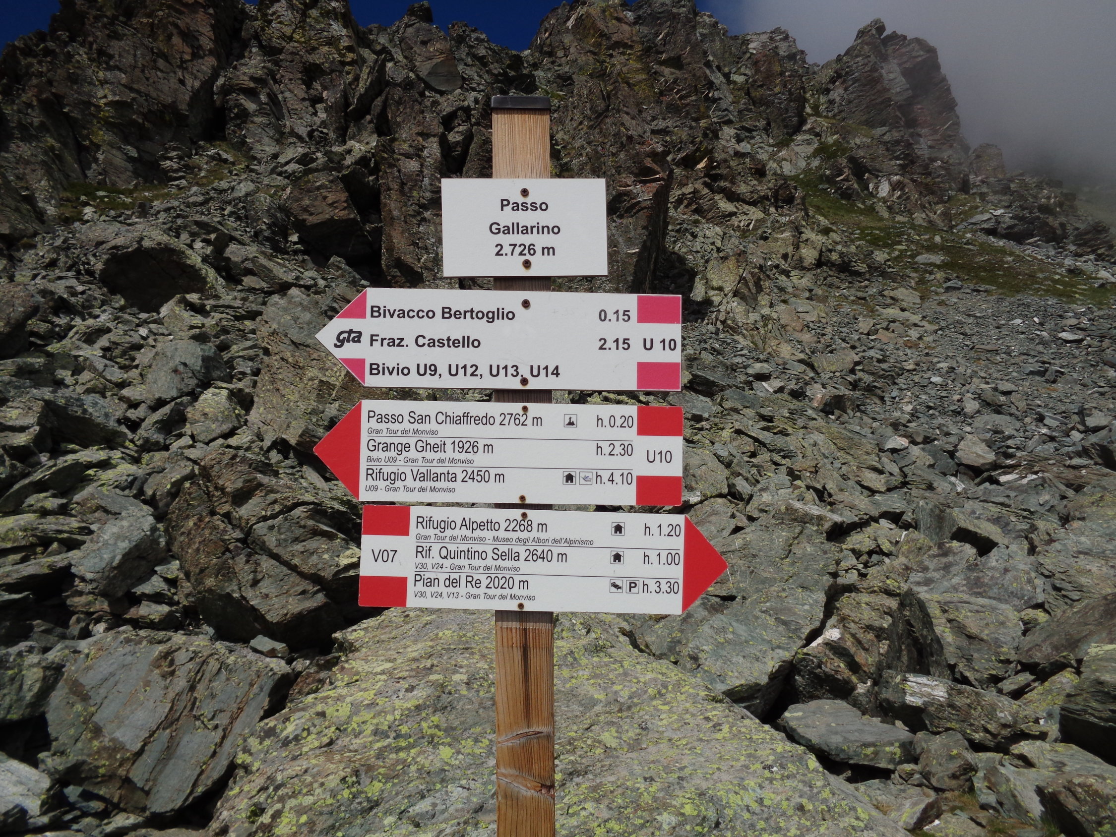Start in "Plan de Re" (mit dem Auto erreichbar) zur Rif. Quintino Sella und weiter über den Passo di San Chiafredo und ins Vallon de Vallanta. Von Dort taleinwärts über die Vallanta Hütte und weiter zum Passo Vallanta. Von dort im Geröll absteigende und weiter auf weiten Grashängen zur Rifugio du Mont Viso. Von dort nun den Anstieg zum Colle delle Traversette. Kurz vor dem Colle gibt es einen sehr alten Tunnel, welcher den Anstieg zum Colle umgeht und direkt wieder zur italienischen Seite führt. Von dort nun den Abstieg nach Plan de Re.