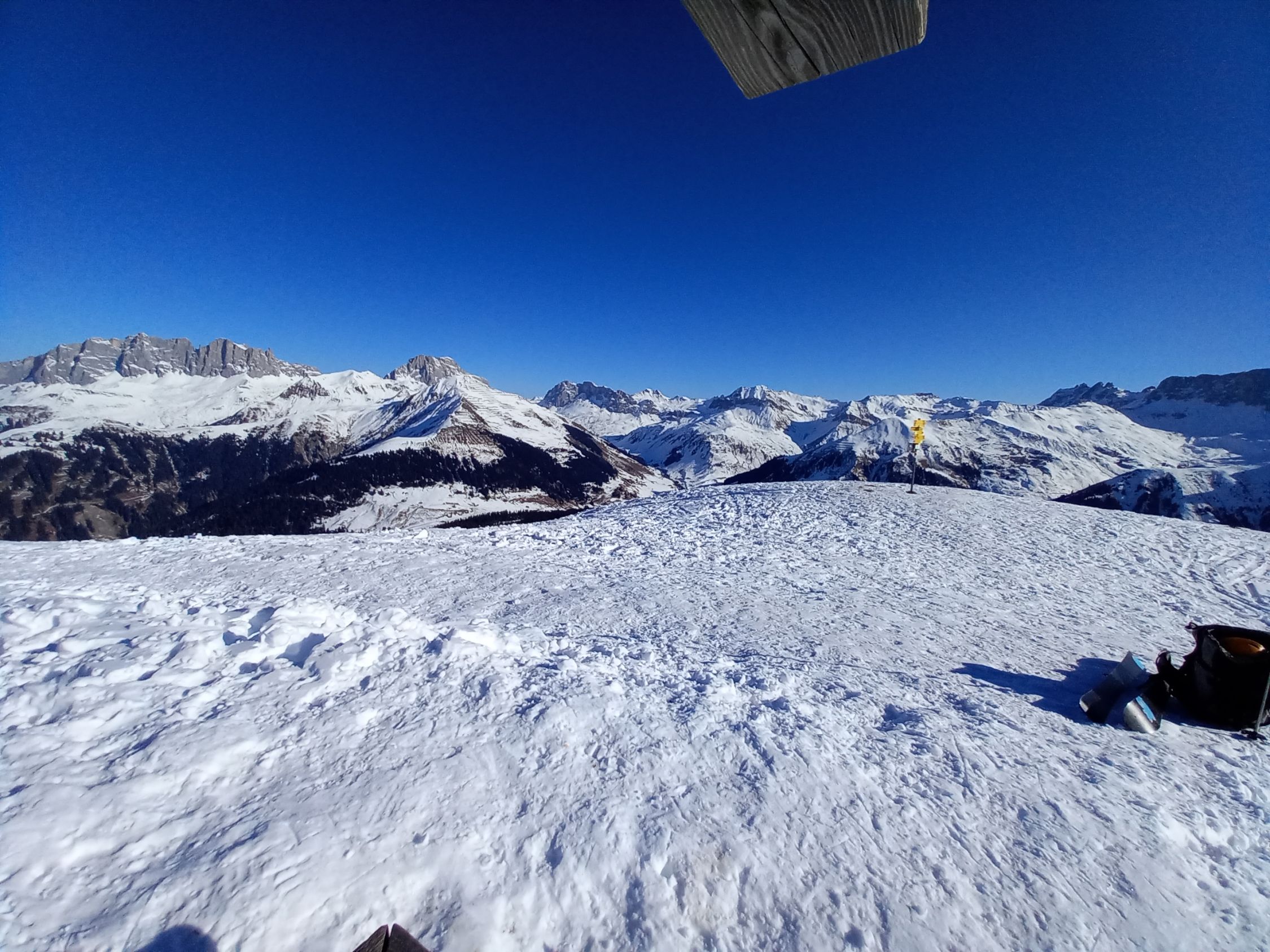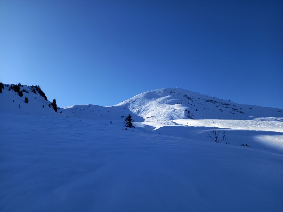 Start um 9:45 in St.Antönien Platz bei eitlem Sonnenschein. 500m Portage auf der Strasse zum Michelshof bis ca. Oberschwendi, ab da kann man sich einen Spur zusammenstellen. Ab Aschüel genug Schnee, flott auf dem schönen Winterwanderweg durch den Wald bis Pkt. 1752 mit den Bänkli beim Grossried, herrlich ruhig. Auf guter Spur weiter via Chli Chrüz zum Gipfel. Ausgezeichnete Rundsicht ins Rätikon und das Prättigau.