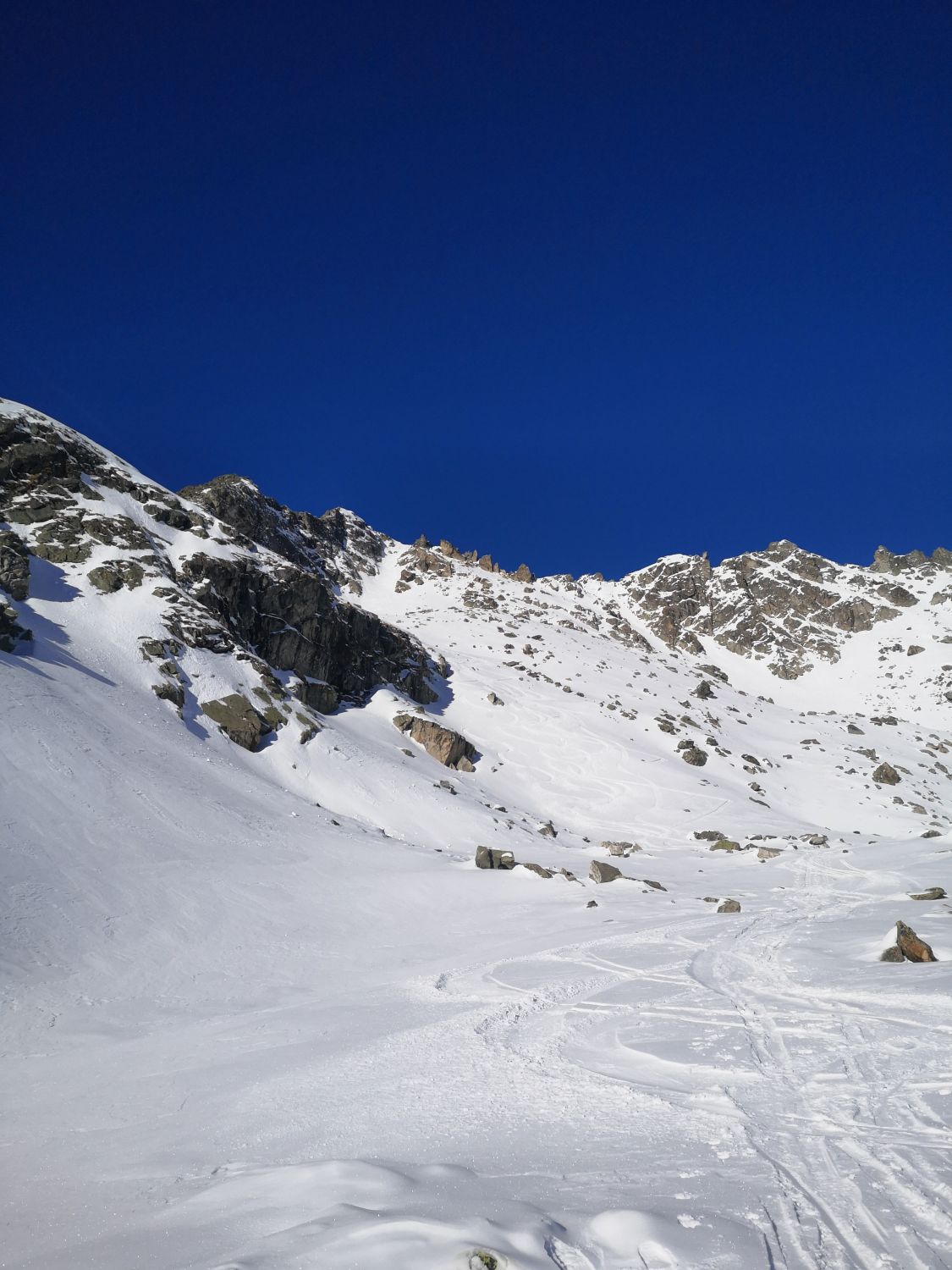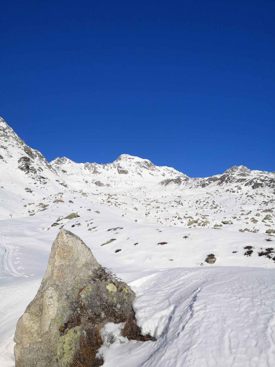 Start oberhalb von S.Benedetg. Auf dem Weg durch den Wald hatte es gerade noch so genügend durchgängig Schnee. Ab Crest Ault gefroren bis Harsch. Traverse ab Crap Ner Sut hatte noch durchgängig Schnee. Ab ca 2100müm viele Steine, mit etwas vorsicht aber gut möglich. Ab ca 2300müm erstaunlich gute Verhältnisse, Mischung aus gepresstem Pulver und aufgebauter Schneedecke. Südseitig stabiler Schneedeckenaufbau, Gipfelanstieg über Südcouloir problemlos möglich. Osthänge mit merklichen aufgebauten Schichten. Kurz oberhalb von 2300 erstaunlich gut, darunter nur mit Vorsicht da wenig Schnee