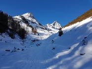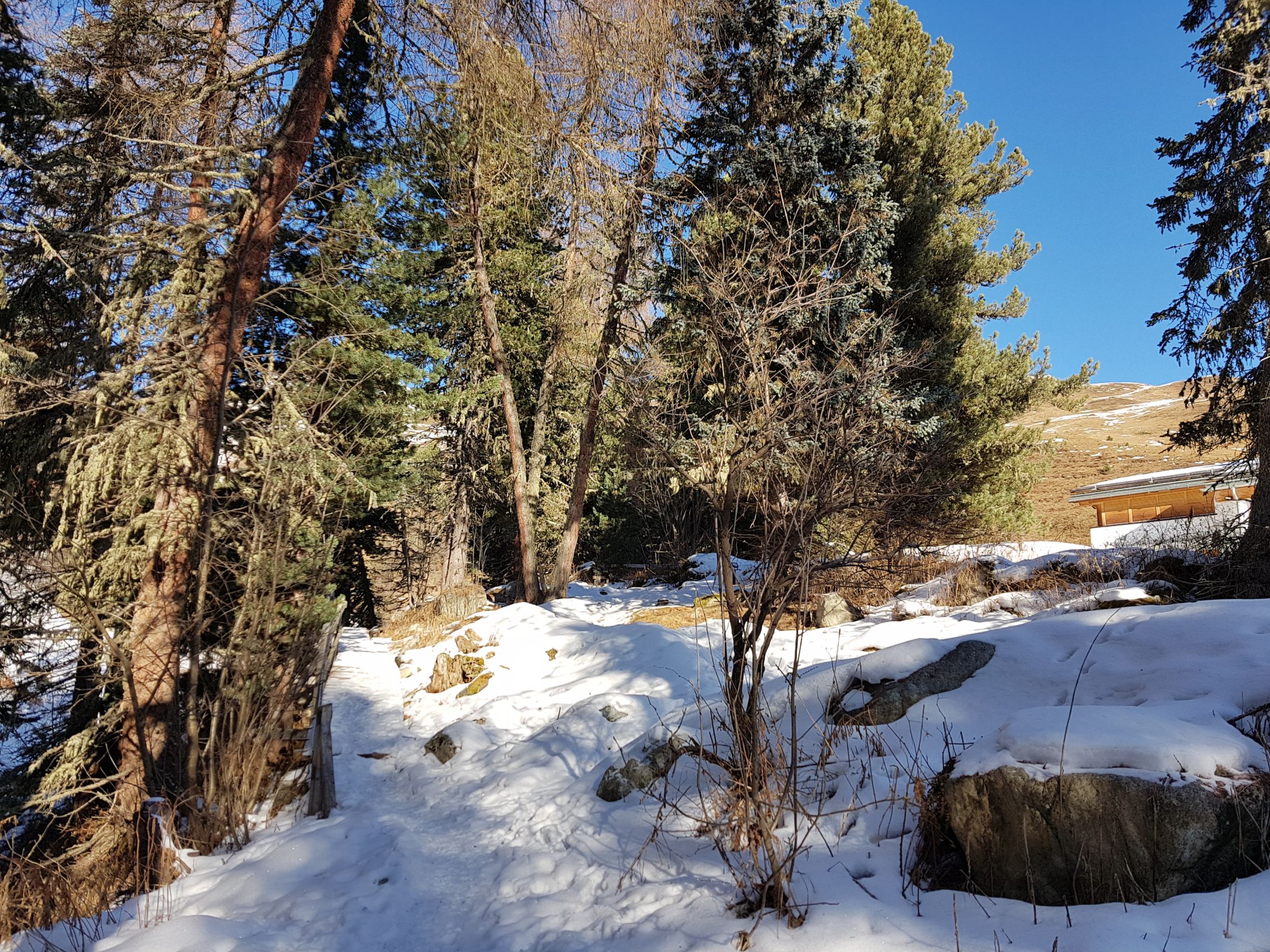 Somit packe ich für heute das letzte Mal die Felle im Rucksack und fahre von der Bergstation Fuorcla Grischa die stark ruppige, aber dennoch geschlossenen Piste durch die Valletta Schlattain hinab und komme bei Glüna (P2456), wo der Pimmes Frittes Duft in der Luft lag, doch noch in den Genuss einer präparierten Piste, die mich direkt nach Celerina führte.