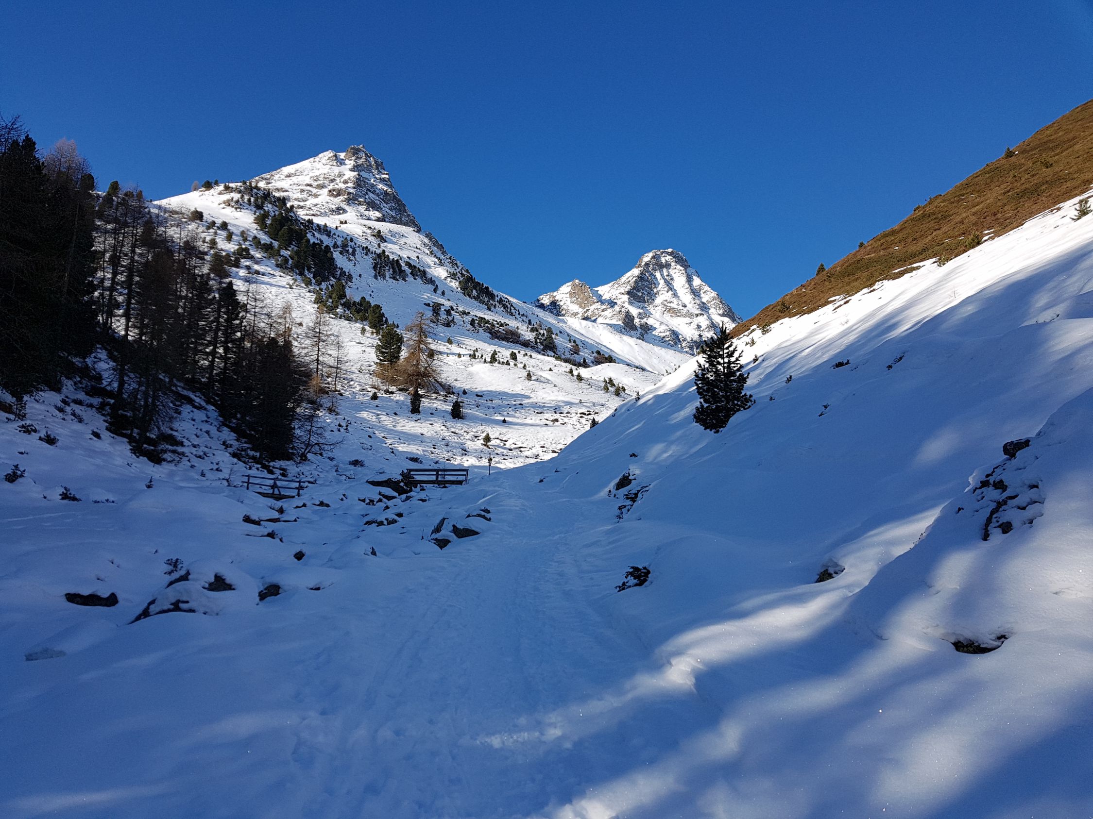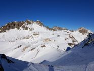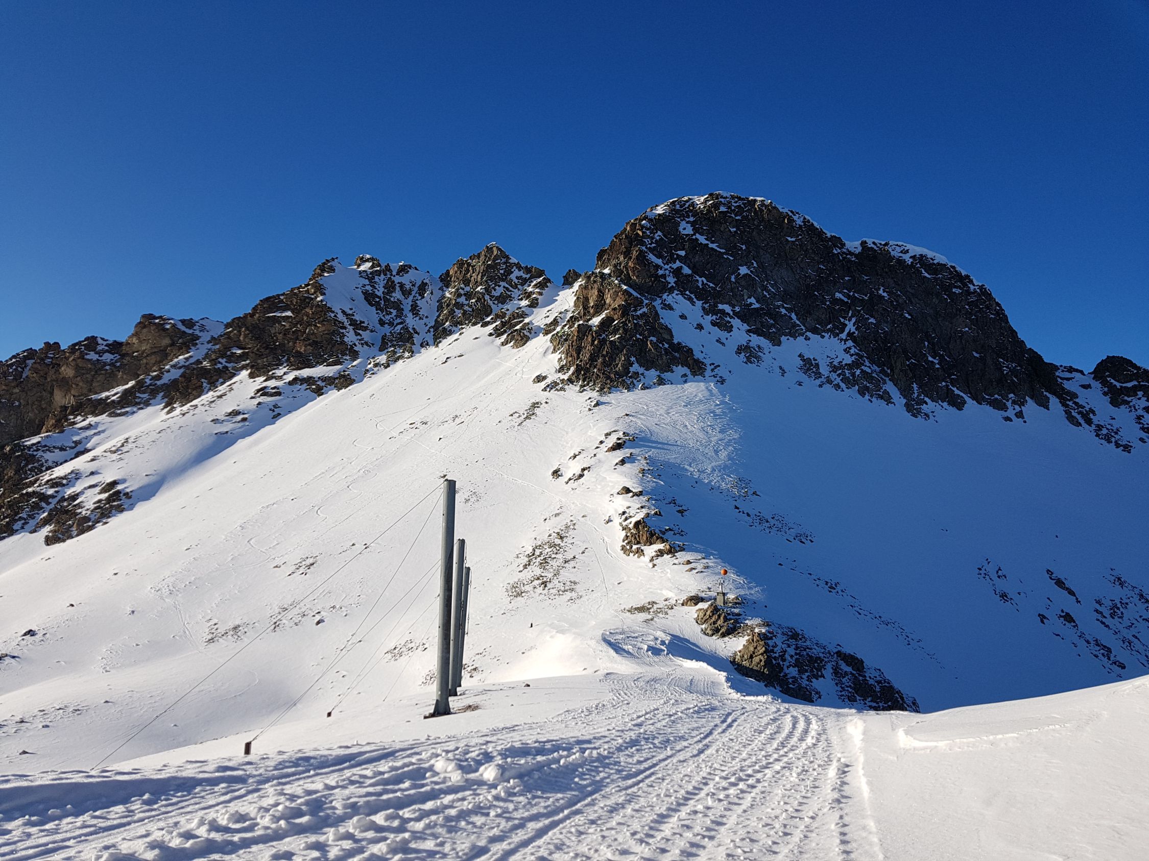 Da der Skibetrieb in der Region des Piz Nair geschlossen ist und im Engadin wenig Schnee vorhanden ist, kommt diese kleine Piz Grisch Runde ohne Skibetrieb mit der sicheren Pistenabfahrt wie gerufen.