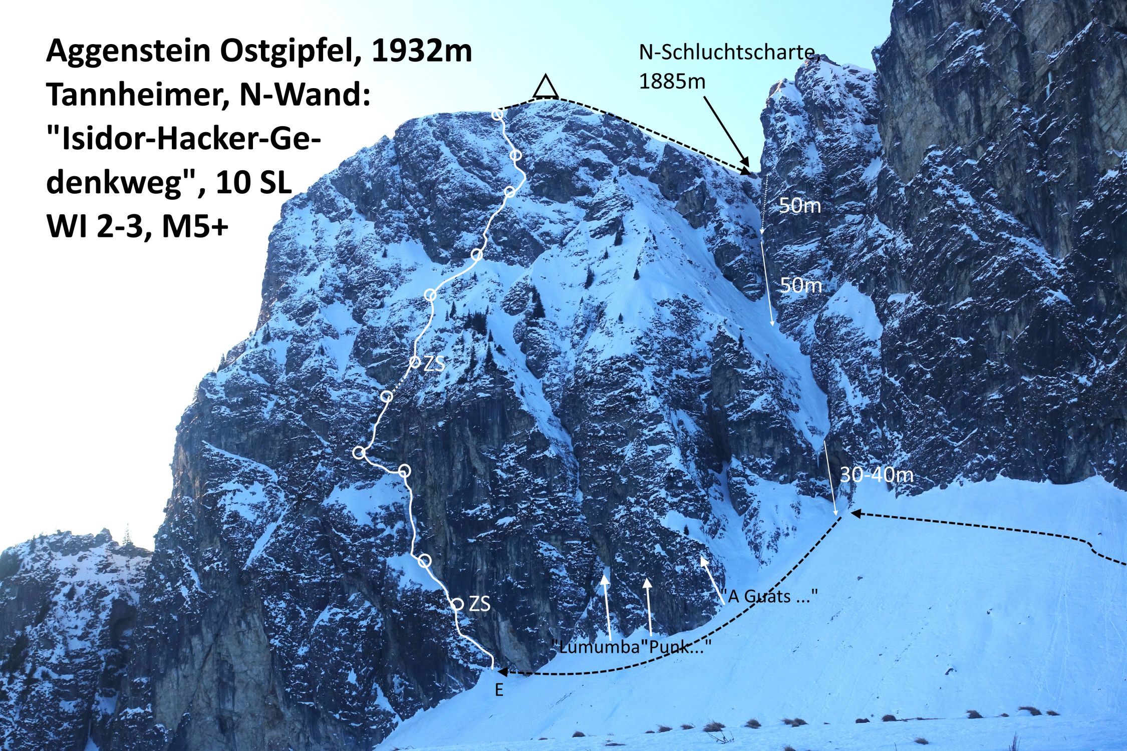 Aggenstein (1986m): N-Wand "Isidor Hacker Gedenkweg"