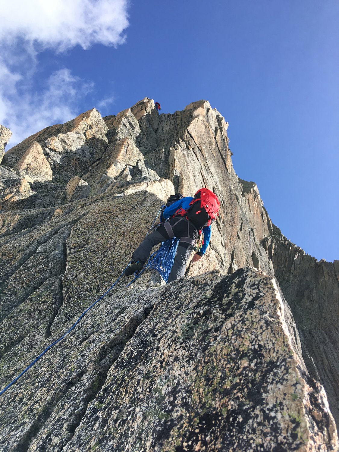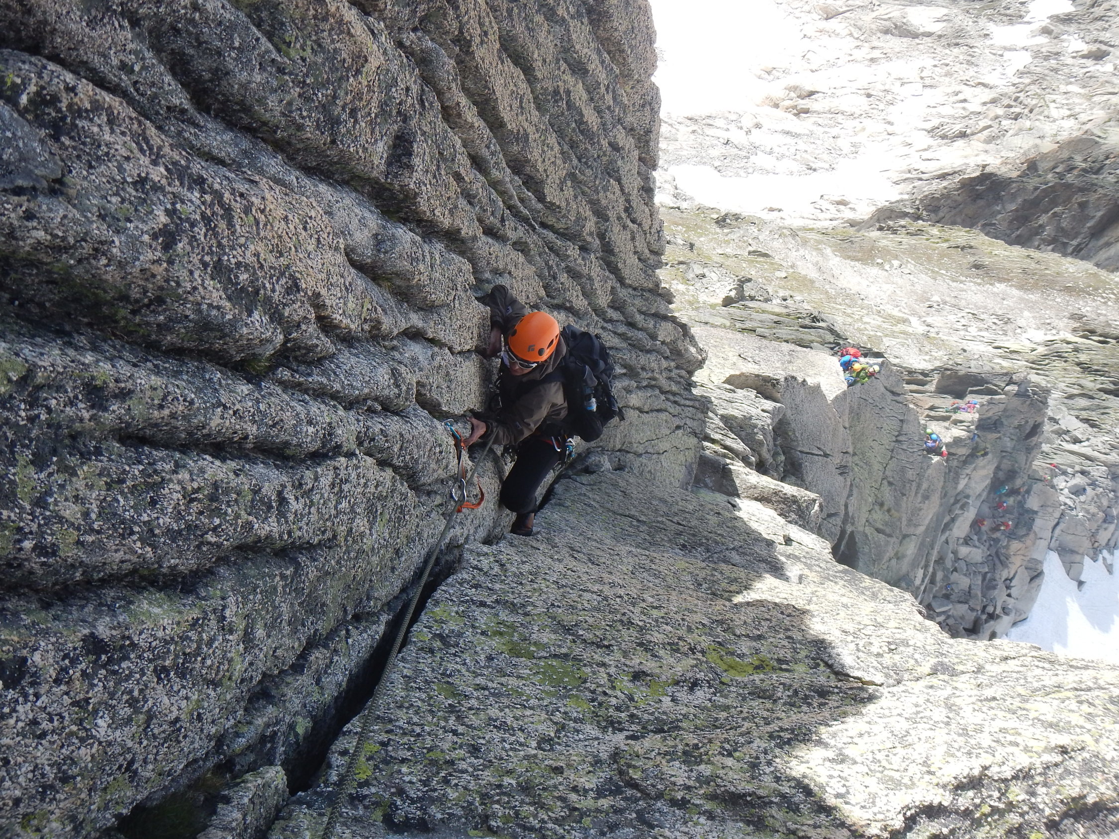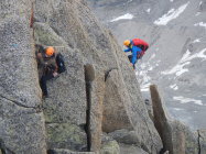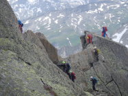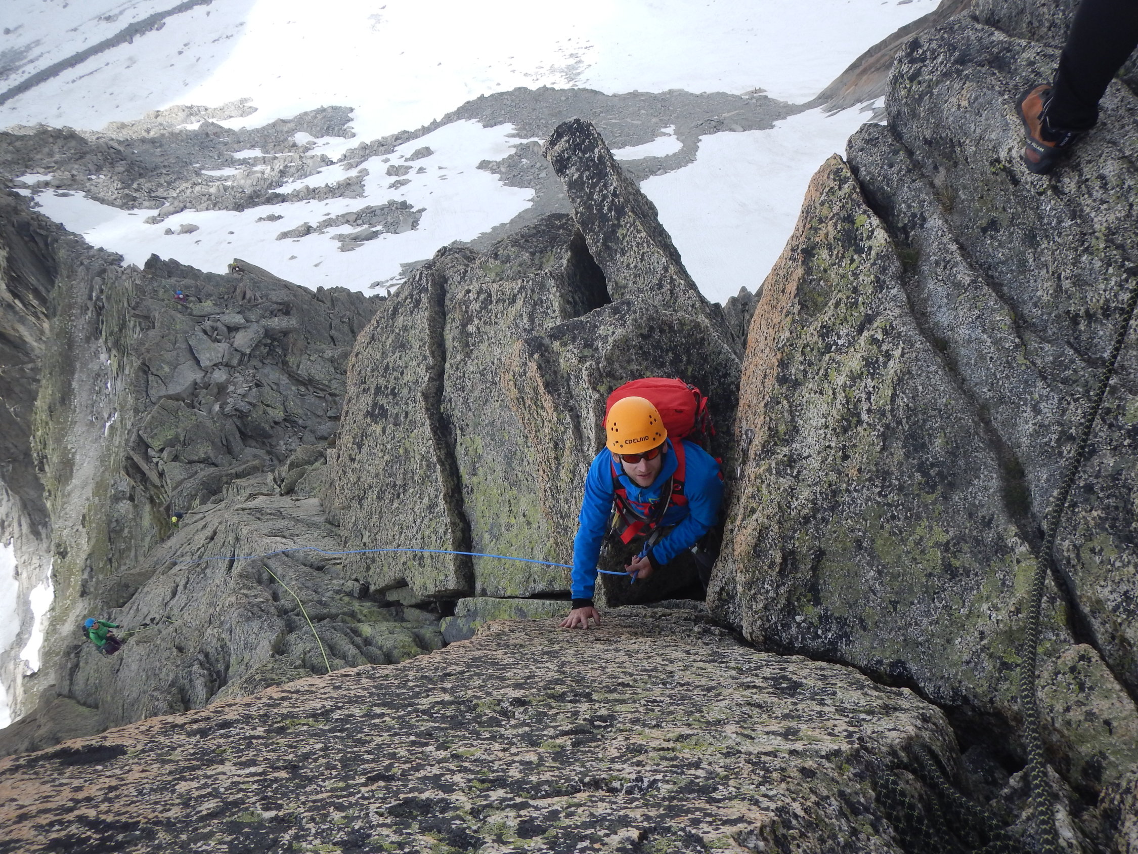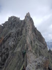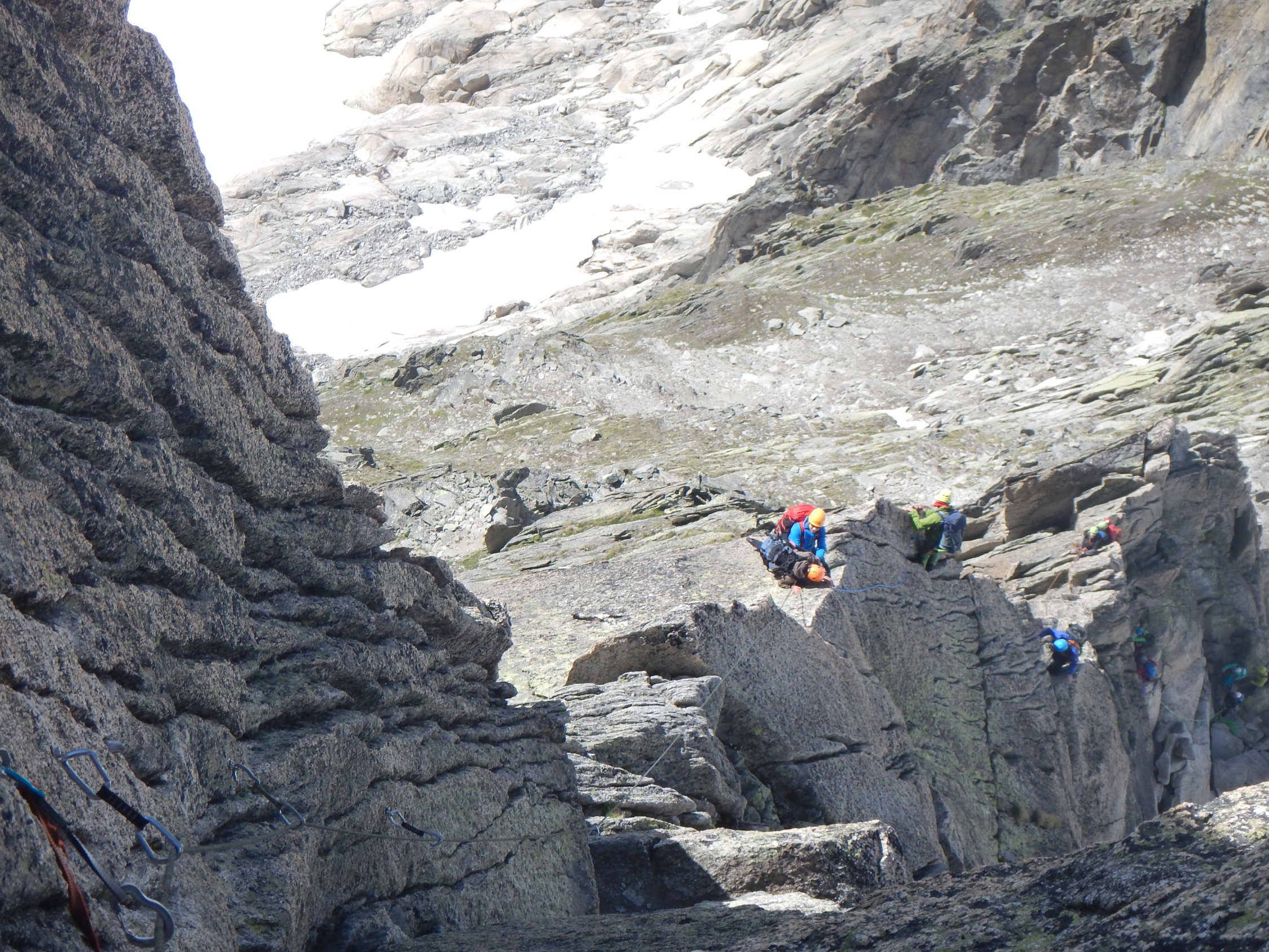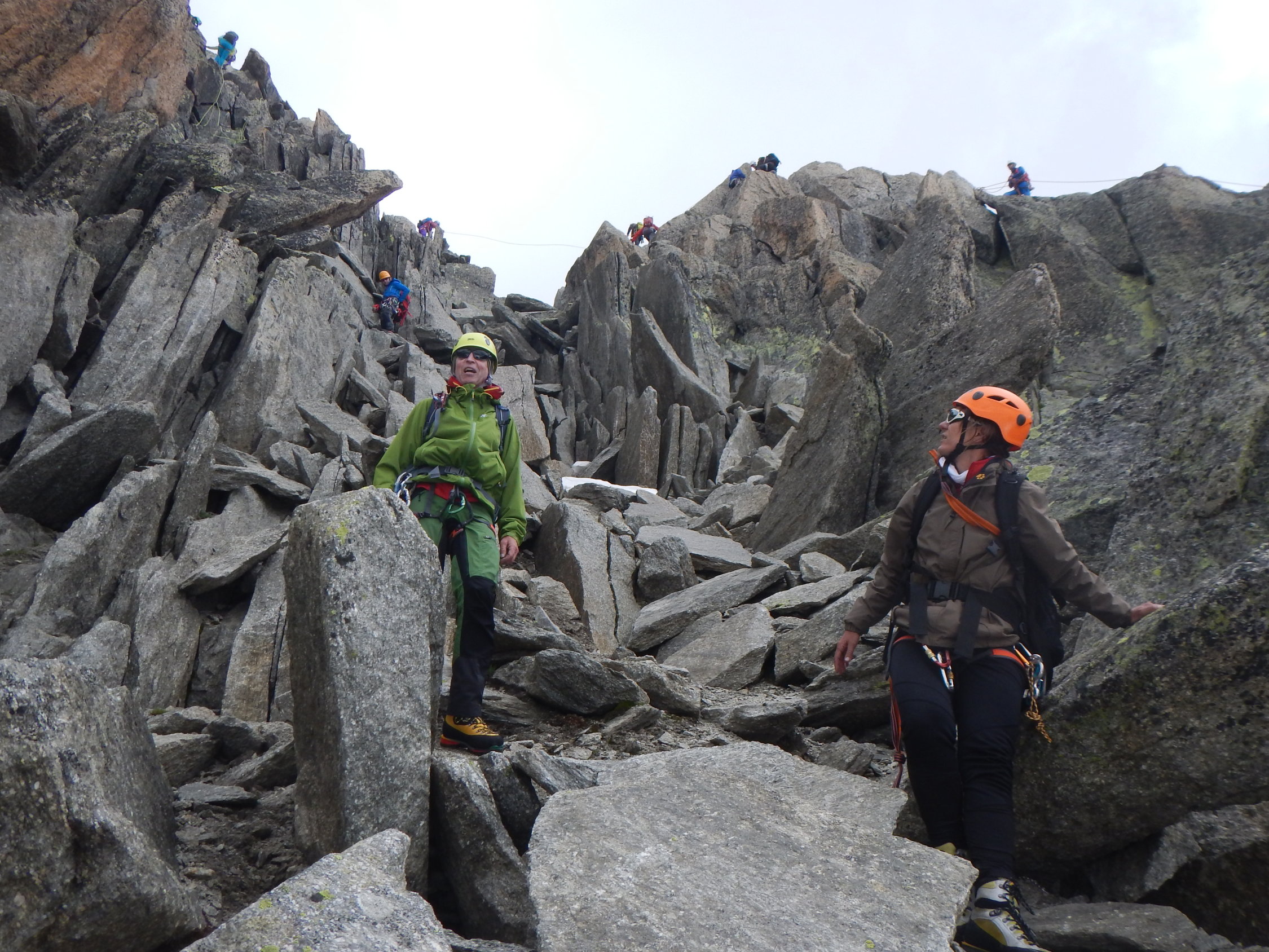 Ziemlich viele Seilschaften unterwegs, auch eine sehr große schweizer Sektions-Gruppe, wahrscheinlich mehr oder weniger die ganze Sektion ;-). Der Grat war dadurch ziemlich voll, ging aber trotzdem gut.
