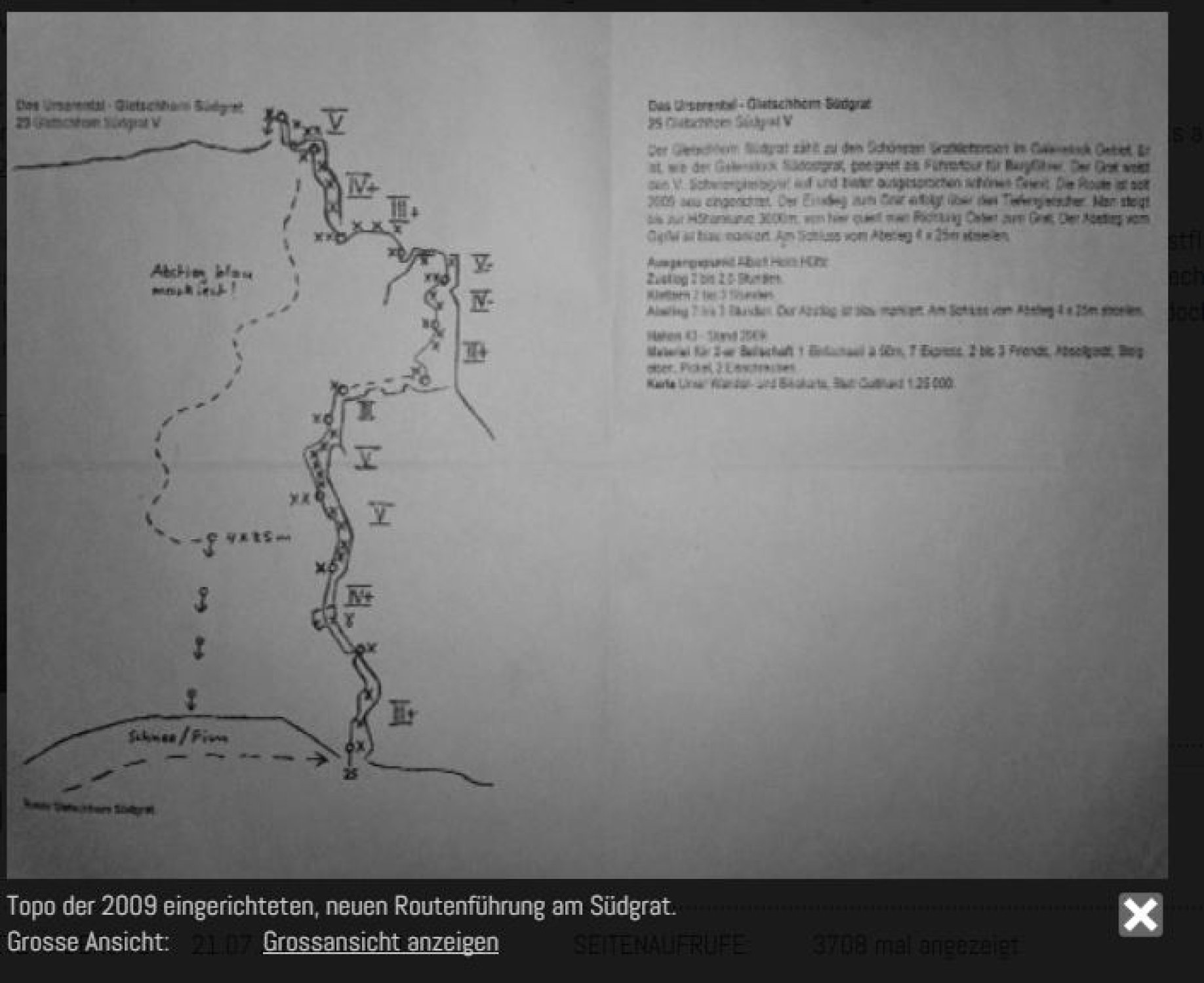 Abstieg bis Abseilstelle fast schneefrei. Nach der Abseilpiste kommt man ca. 30m entfernt vom Einstieg raus. Wer Pickel und Steigeisen am Einstieg deponiert, hat es nicht leicht im steilen Firnfeld dorthin rüberzuqueren (Abrutschgefahr v.a. bei hartem Firn). Evtl. zumindest Steigeisen oder Stock mitnehmen in den Grat.