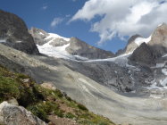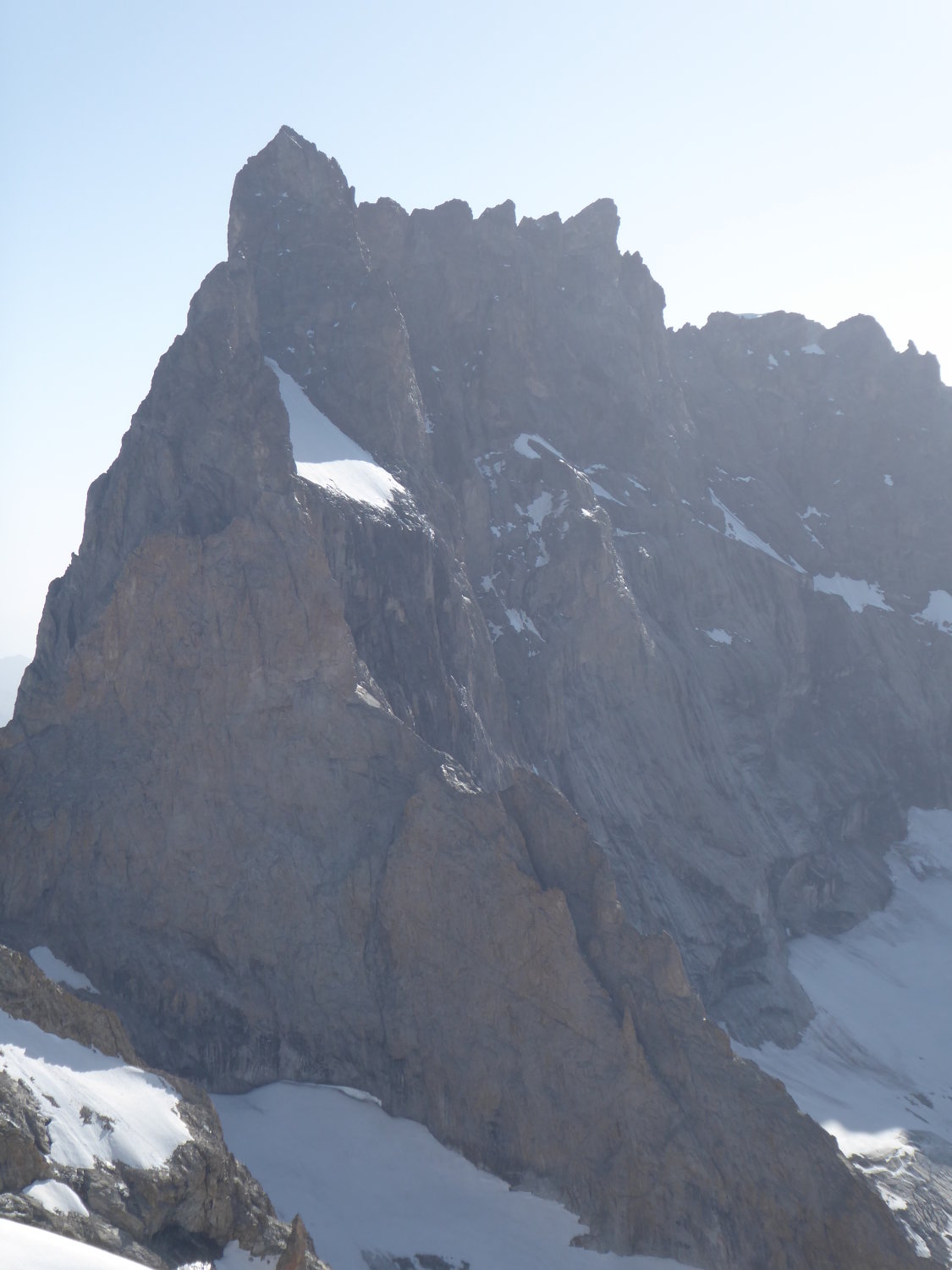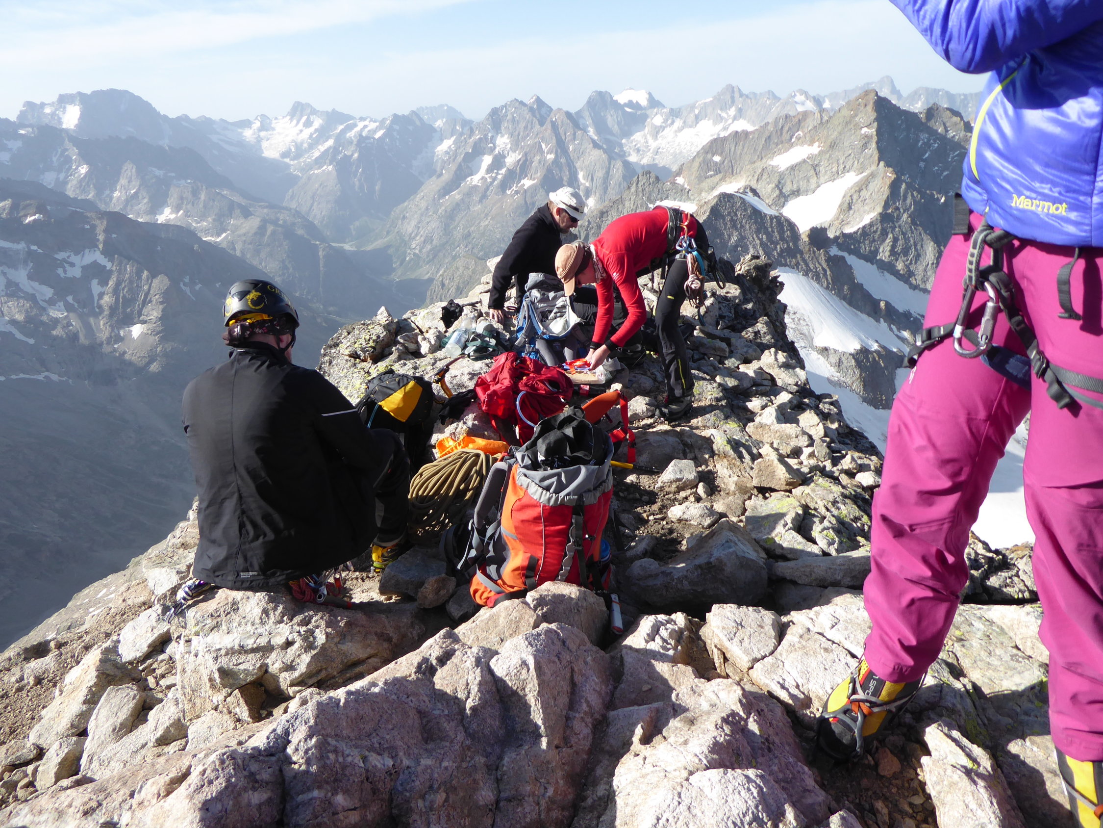 Bergschrund unterhalb der Breche Rateau im Moment noch gut machbar. Bei den hohen Temperaturen und zunehmender Ausaperung dürfte dieser ab Anfang August auch problematisch werden.