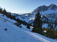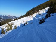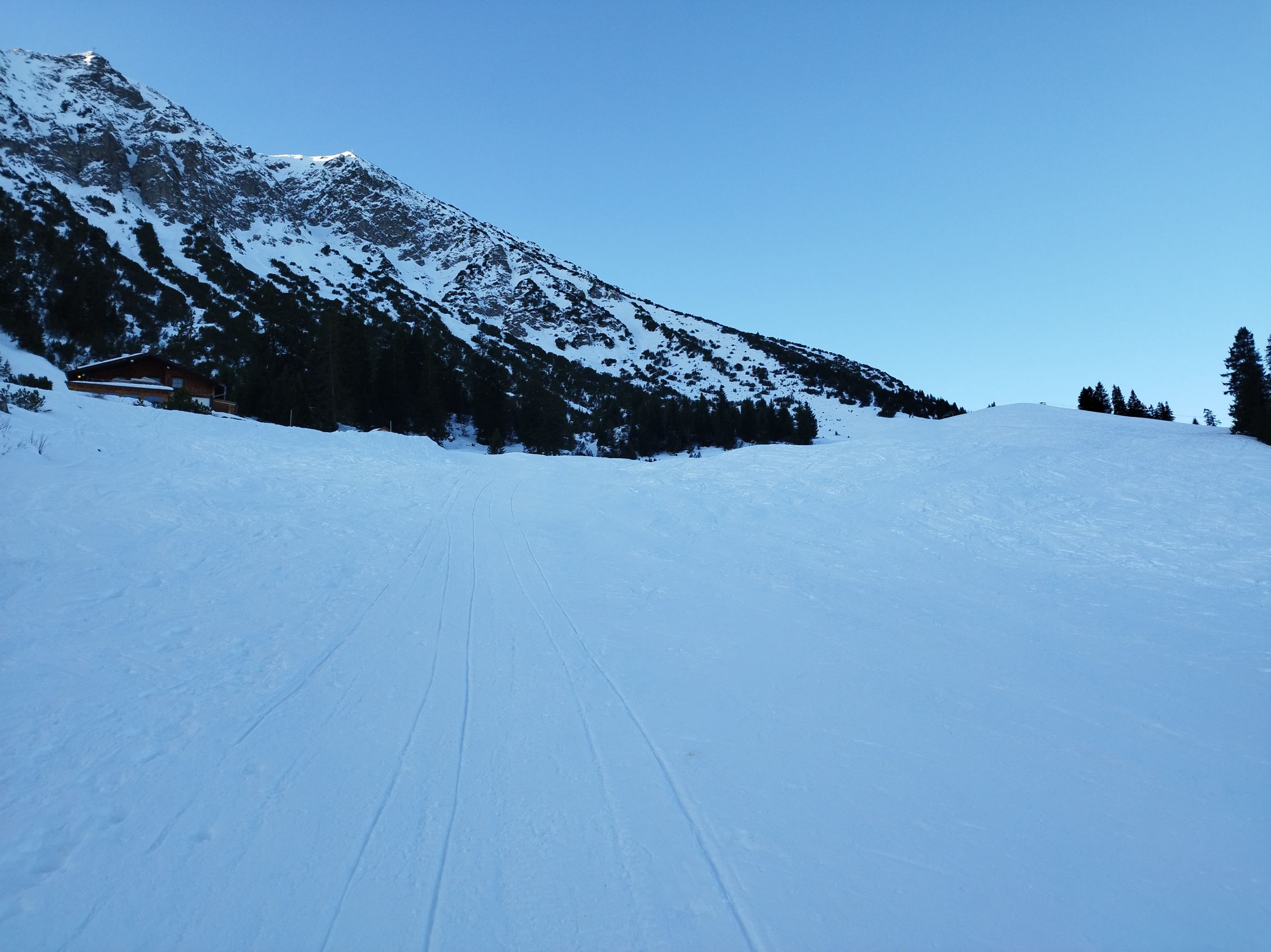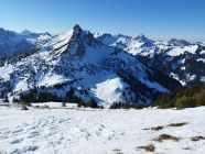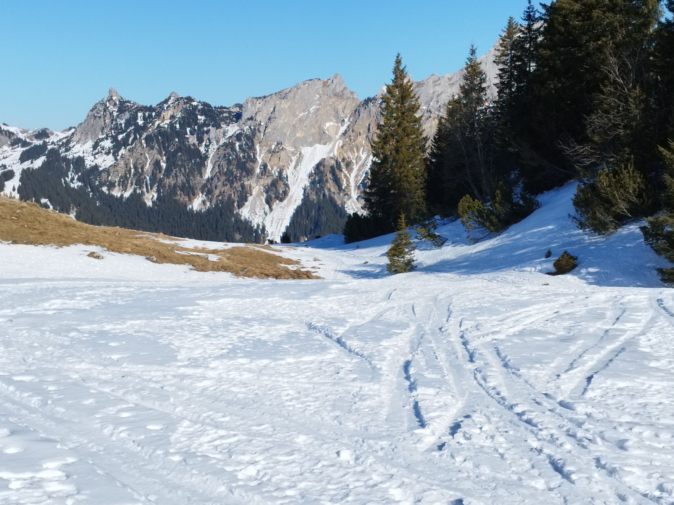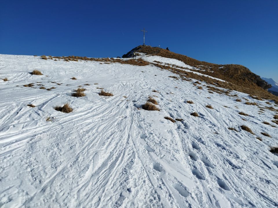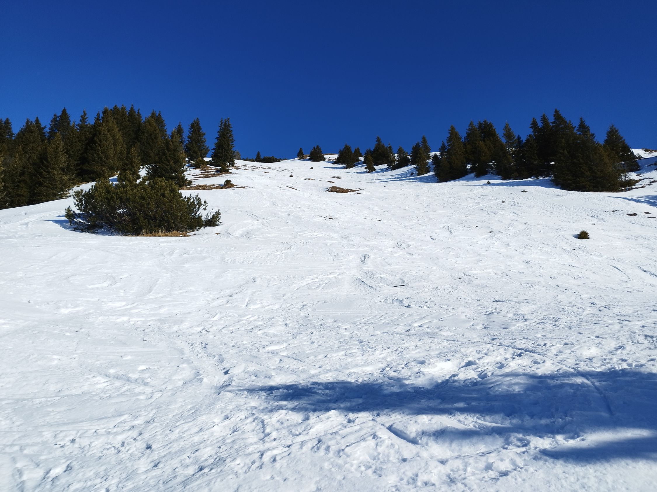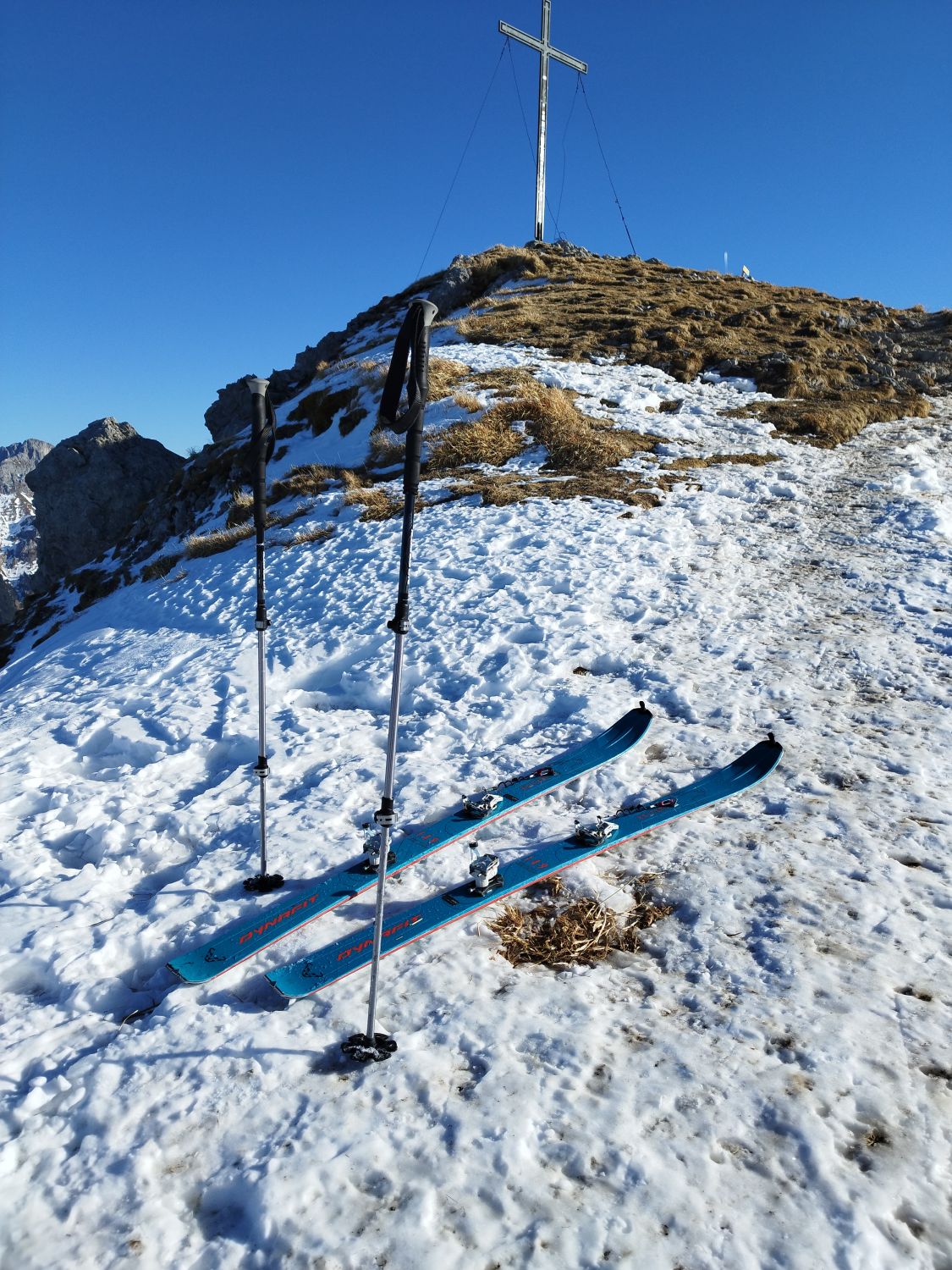 8.15 Uhr Start am Parkplatz der Krinnenalp-Talstation. Skigebiet z.Zt. nicht in Betrieb-Krinnenalpe geöffnet. Über die Natur-Piste Aufstieg ab Talstion über Krinnealpe-Nesselwängler Ödenalpe- zum Südrücken und mit Ski bis zum Gipfel. Südseitig Schnee unterhalb Gipfel aktuell noch gerade ausreichend. Über Piste perfekte Verhältnisse bis ins Tal.