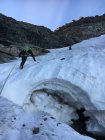 Aufstieg bis zum Fuorcla Prievlusa (3'437m) , die letzten Meter auf einem sehr steilen Schneefeld.