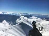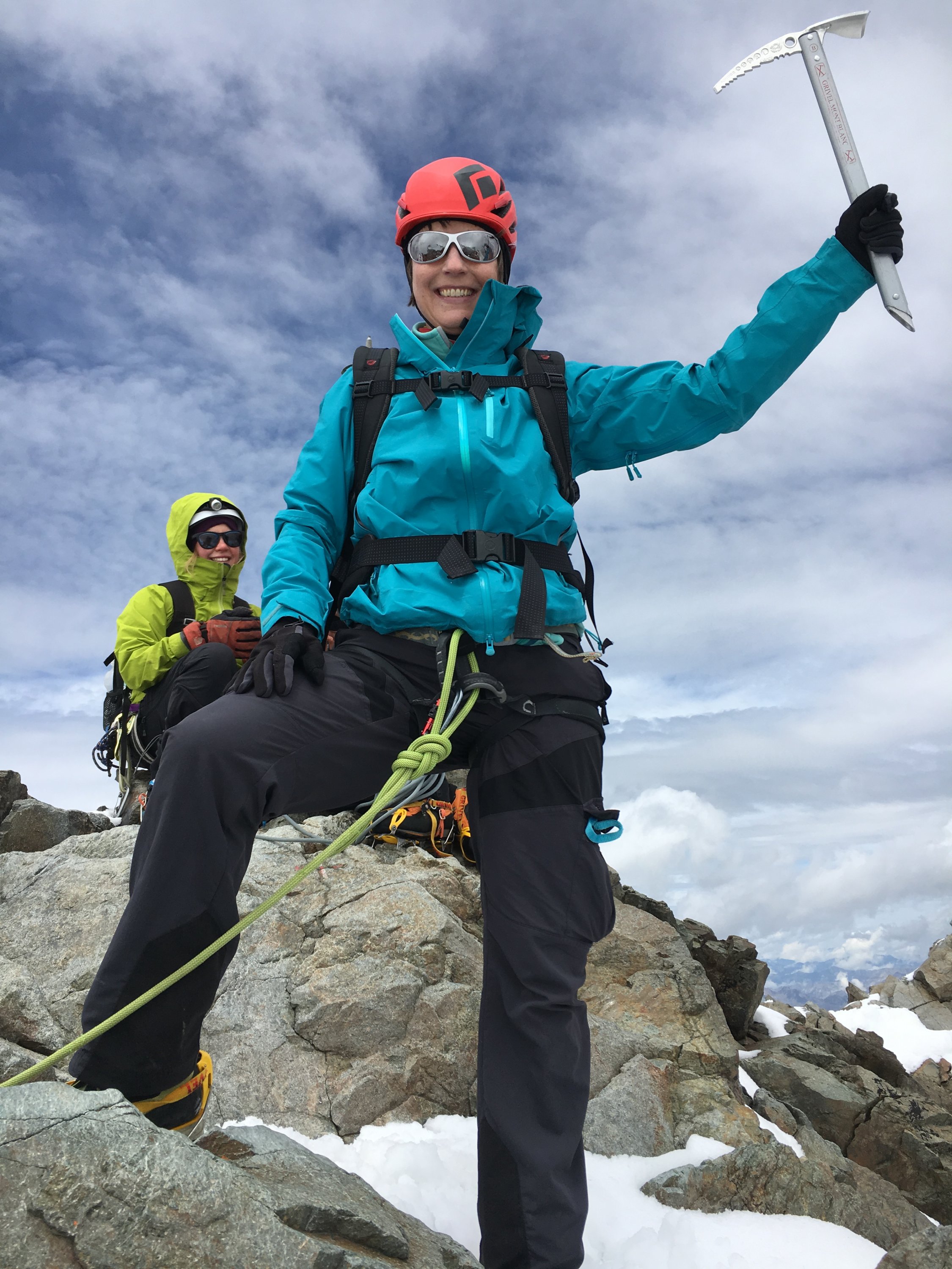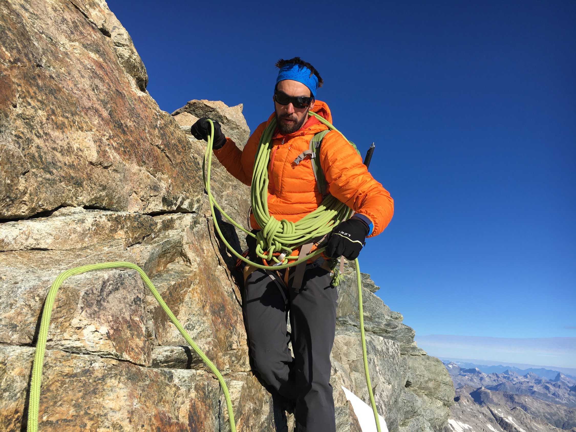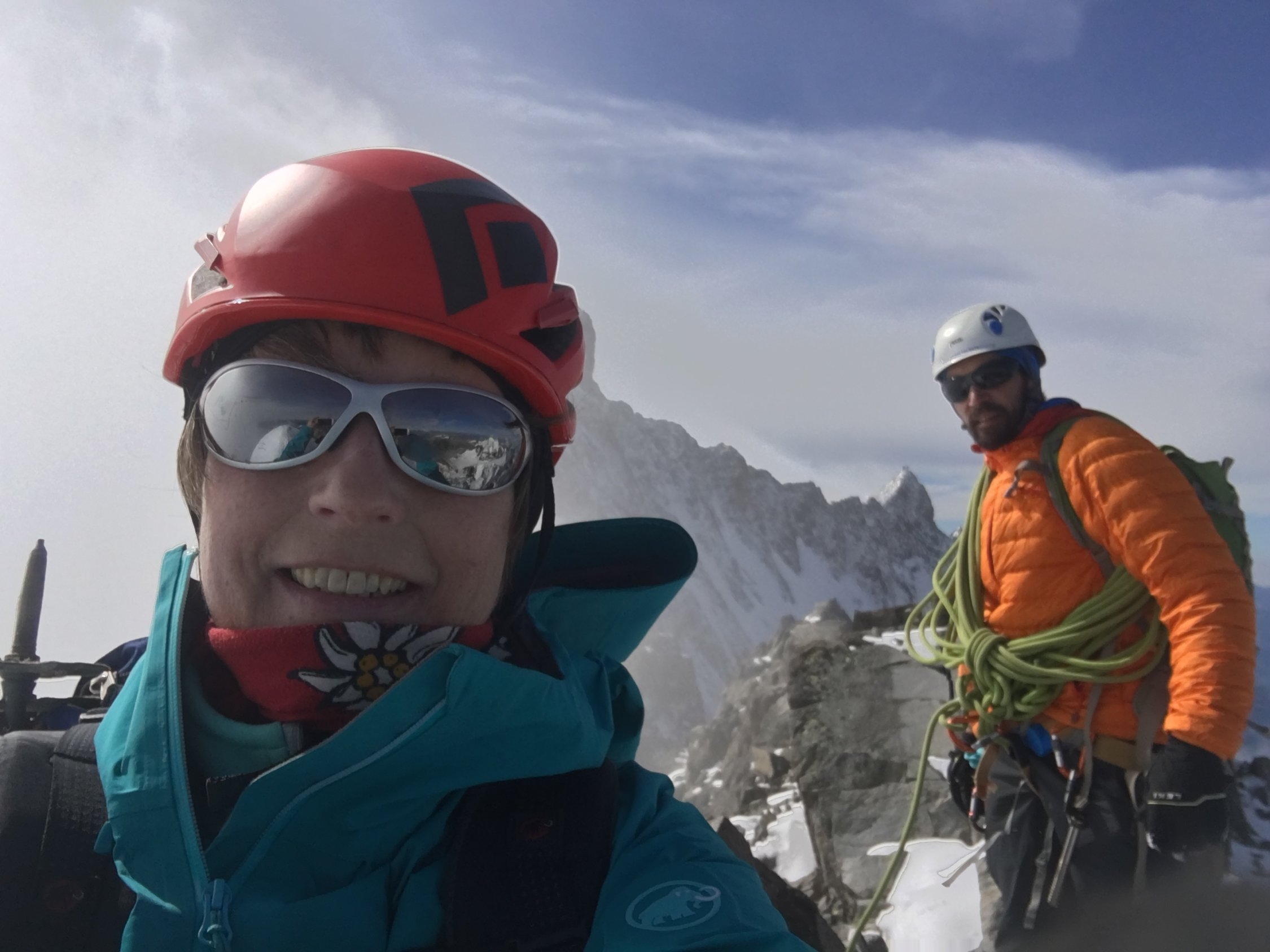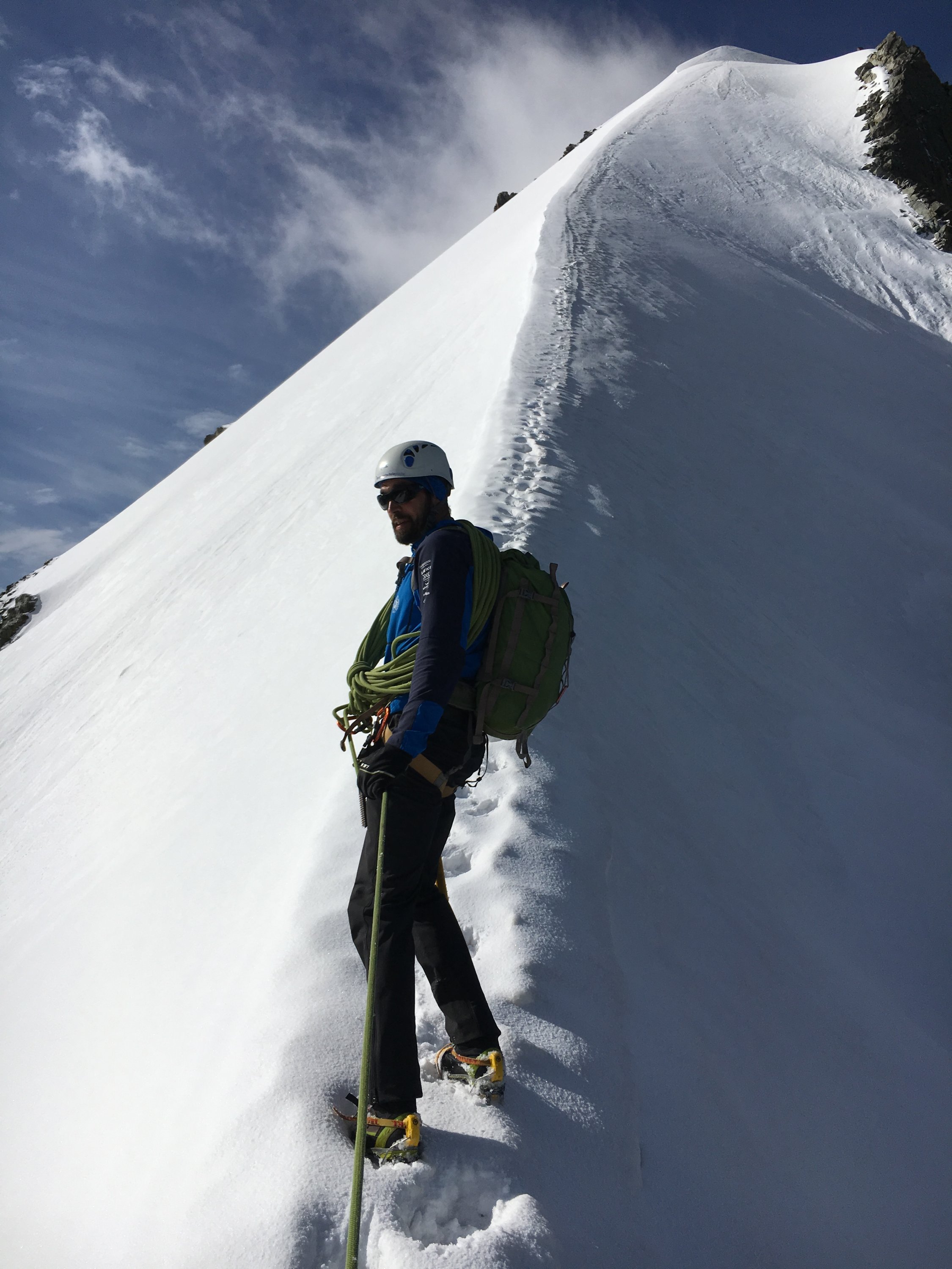 Ankunft am Piz Bianco (oder Piz Alv) auf 3'995 m. Schwierige Gratkletterei bis zum Piz Bernina, auf und ab über Felsen. Gute Tritte und Griffe, aber ziemlich viel Neuschnee.
