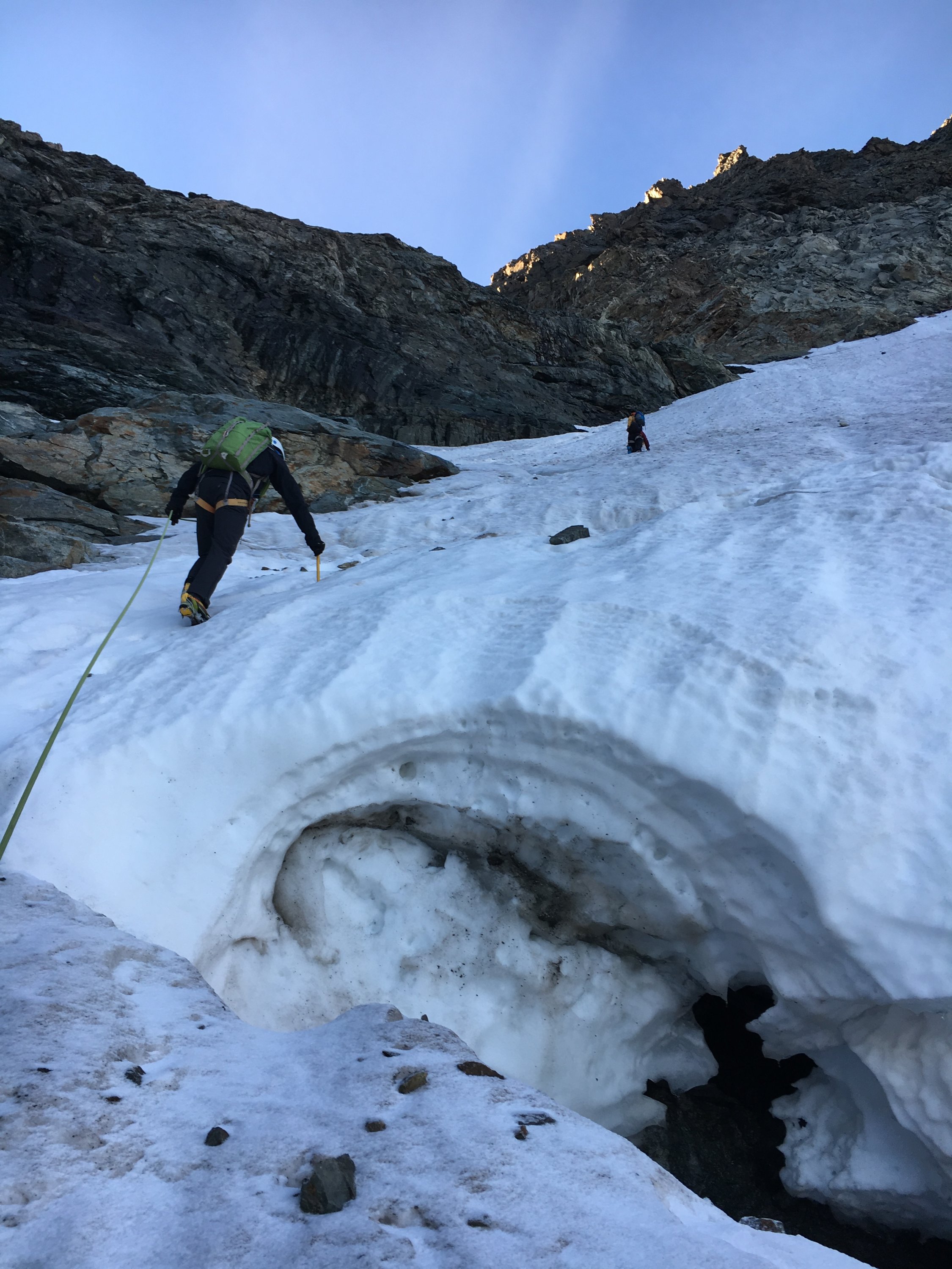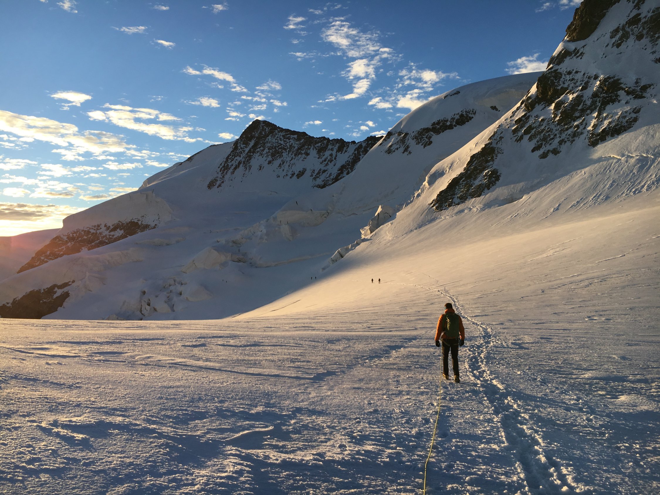 Am nächsten Tag Gletscherwanderung über die Bellavista Terrasse, Überschreitung des Piz Palü von West nach Ost, Abstieg über den Gletscher nach Divolezza, natürlich immer gut gesichert von meinem Bergführer Jan.
