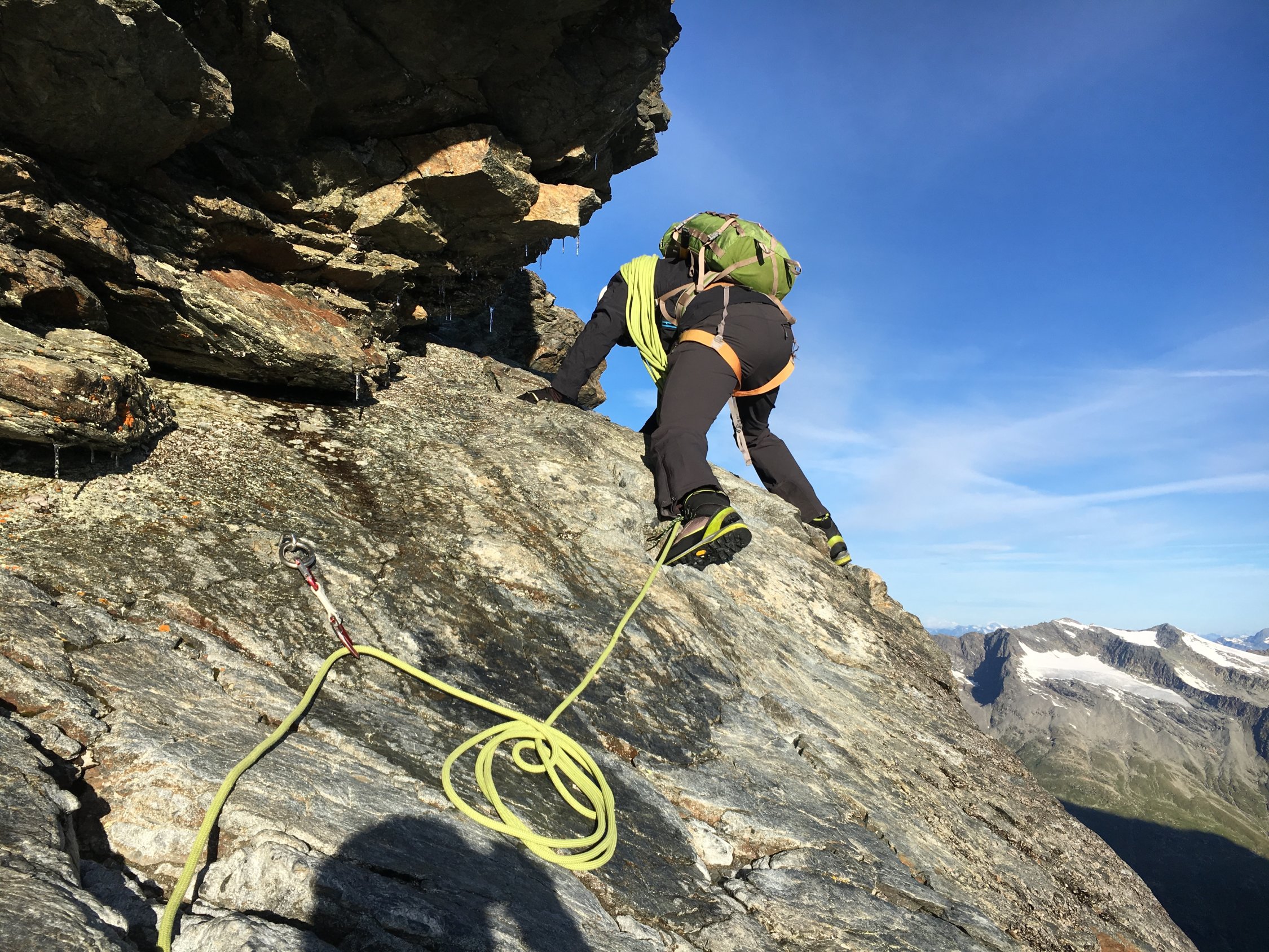 Abstieg über den Spalagrat zur Marco e Rosa Hütte.