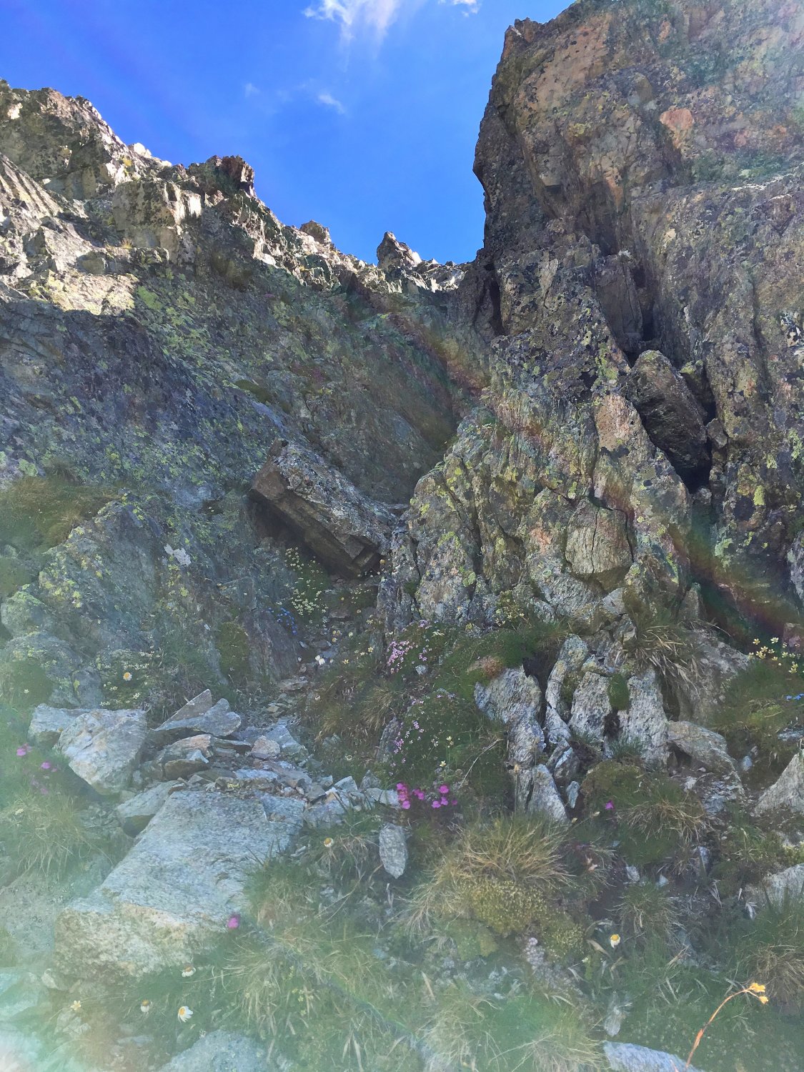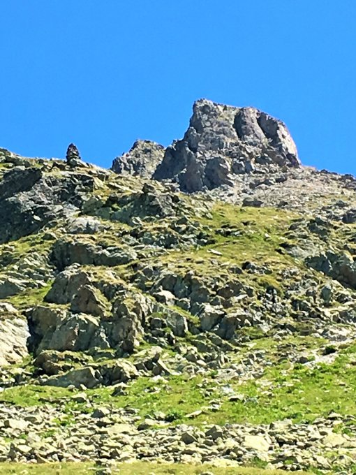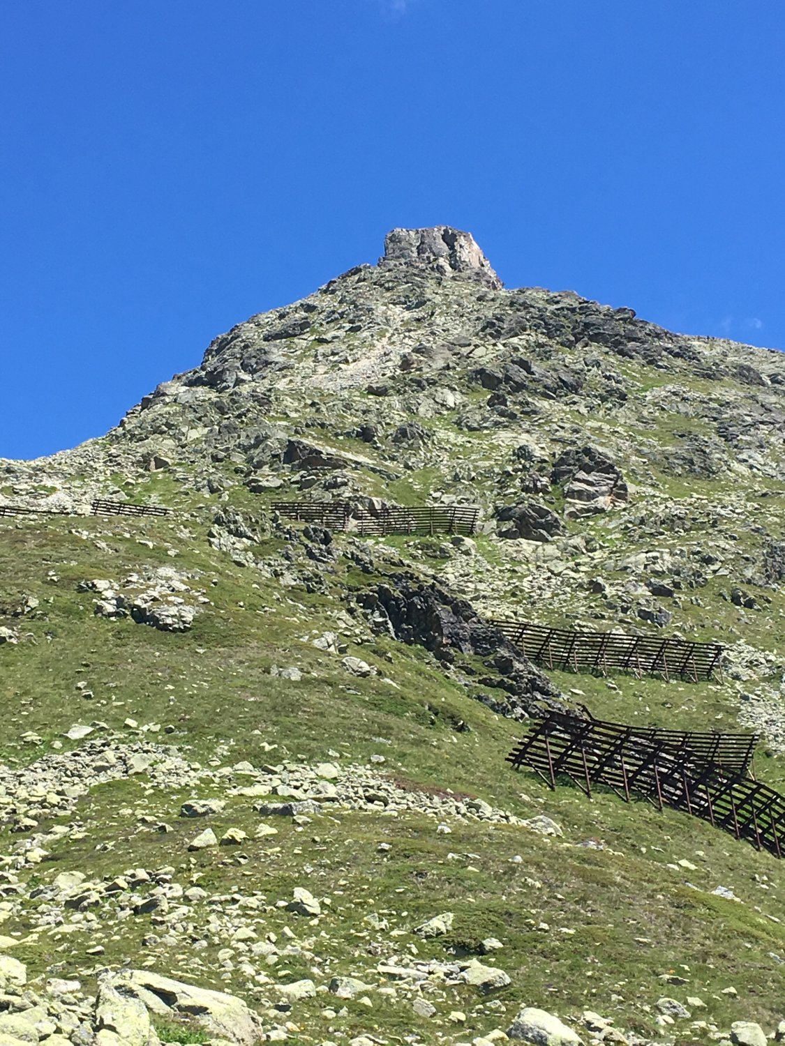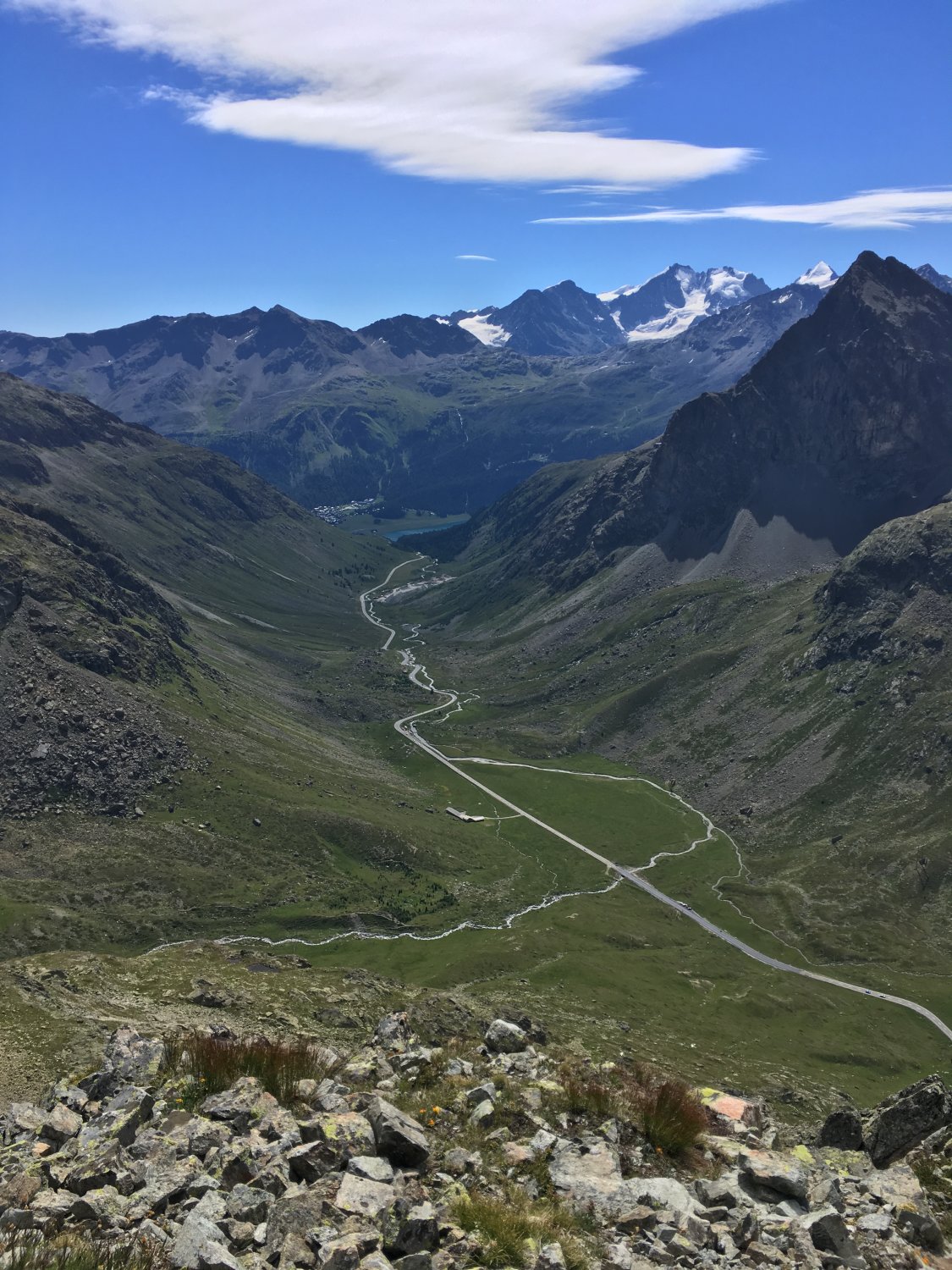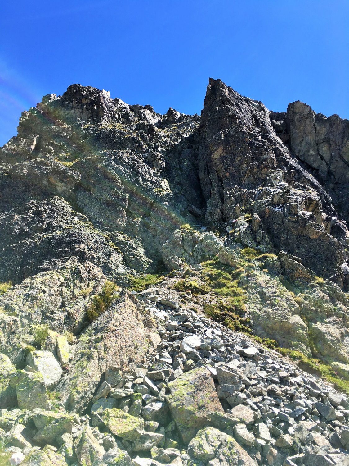 Der Chüern Nair ist im Engadiner Romanisch das "schwarze Horn". Attraktive Bergtour mit schönem Ausblick in alle Richtungen. Ich bin auf der gleichen Route abgestiegen. Vom Gipfel kann man auch dem Nord- Nordostgrat entlang klettern (T5, etwas ausgesetzt, zum Teil brüchiger Fels) zum Piz Valletta 2917 m und 2932 m.
