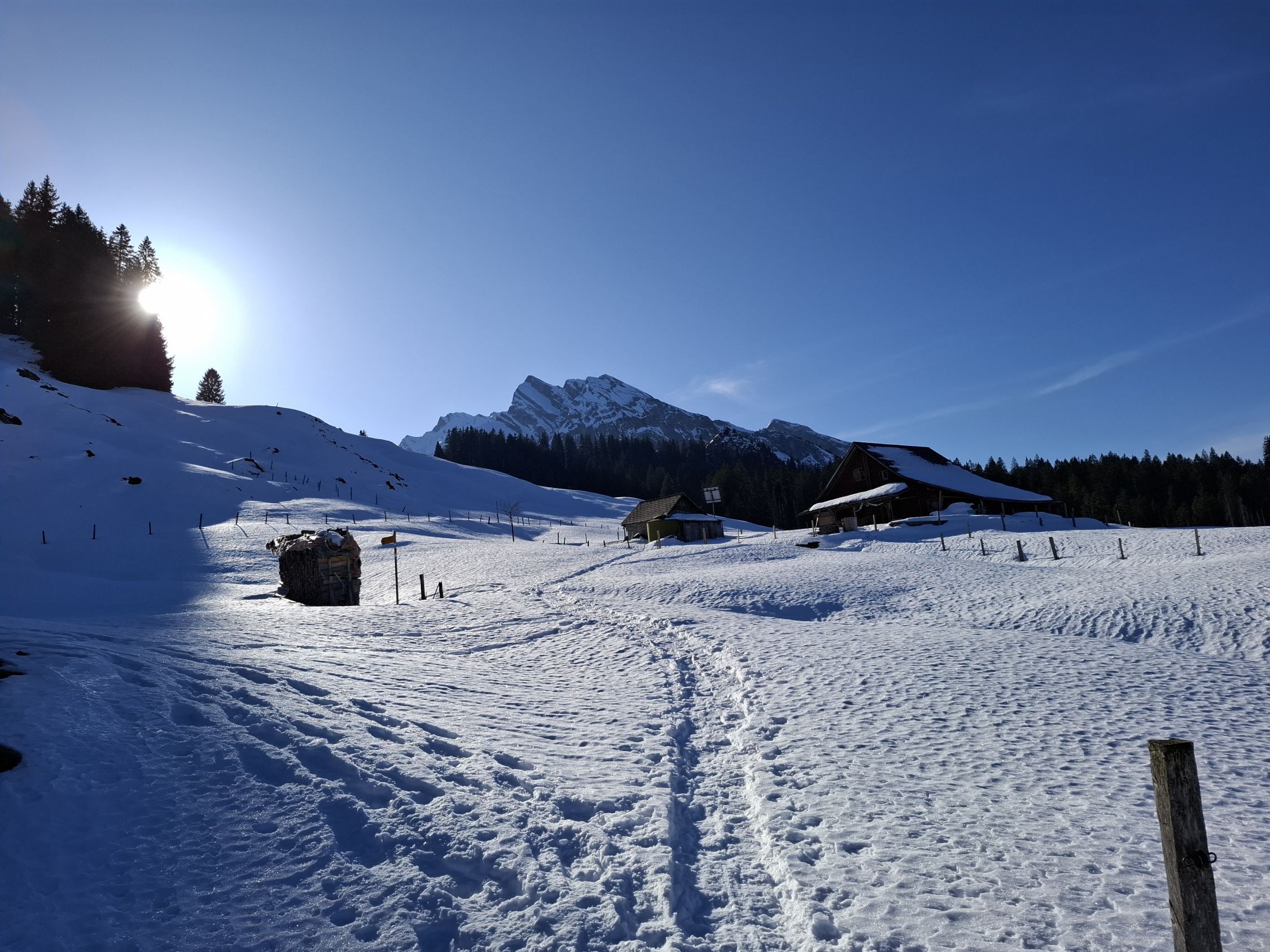 gute Spur bis Alp Tannenstoffel, ab dort schlechte Spur oder selber spuren. Die Leiter mussten wir vom Schnee befreien. Die Ketten sind nicht frei. Kurz unter dem Gipfel kehrten wir um, da uns eine Stelle zu riskant erschien.