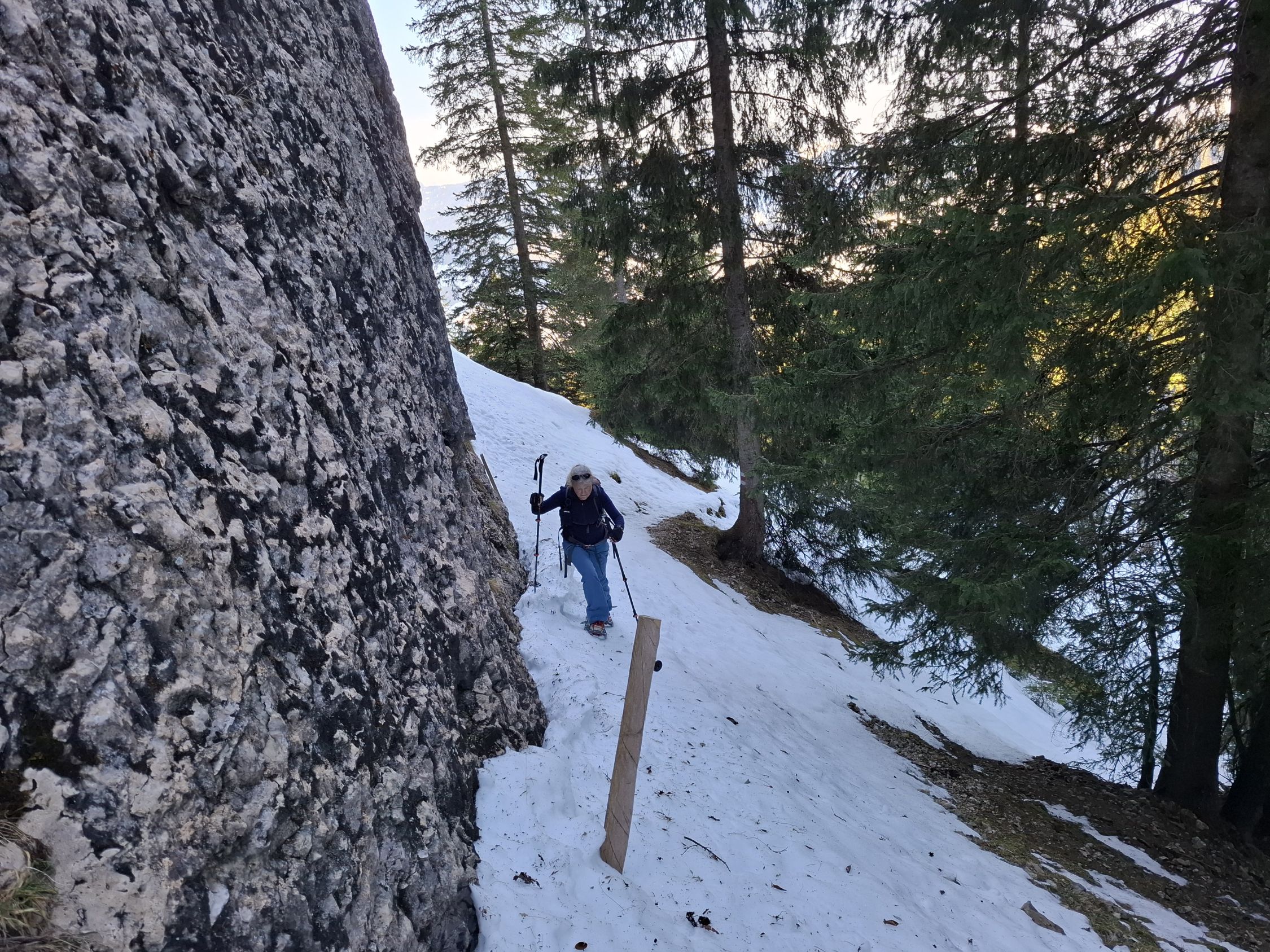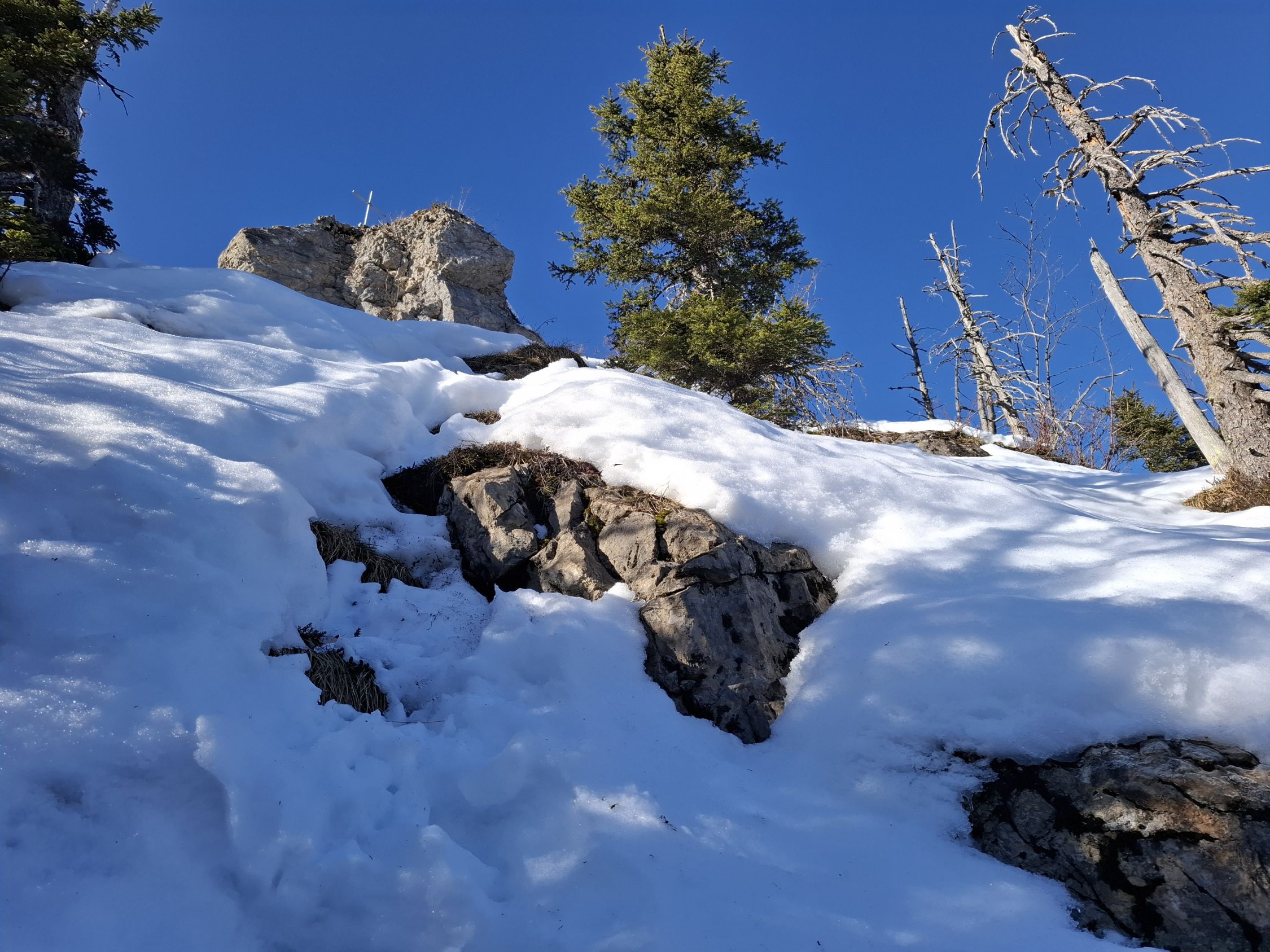 bis zum Einstieg in den Gipfelfelsen, einfache und aussichtsreiche Tour. Die Besteigung des Gipfels ist, im Winter, nicht zu unterschätzen, da es allseitig ziemlich runtergeht.
