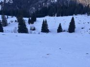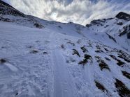 Zusatzinfo: Die Abfahrtsvariante via Biet zur Waag wurde heute auch gemacht, die Verhältnisse sollen dort ähnlich gewesen sein (Zitat: "kein Genuss"). Die Besteigung des Biet-Gipfels erschien aufgrund der vielen aperen Stellen nicht lohnenswert. Es habe aber durchgehend Schnee bis hinunter zur Waag, wobei es im untersten Teil natürlich knapp sei.