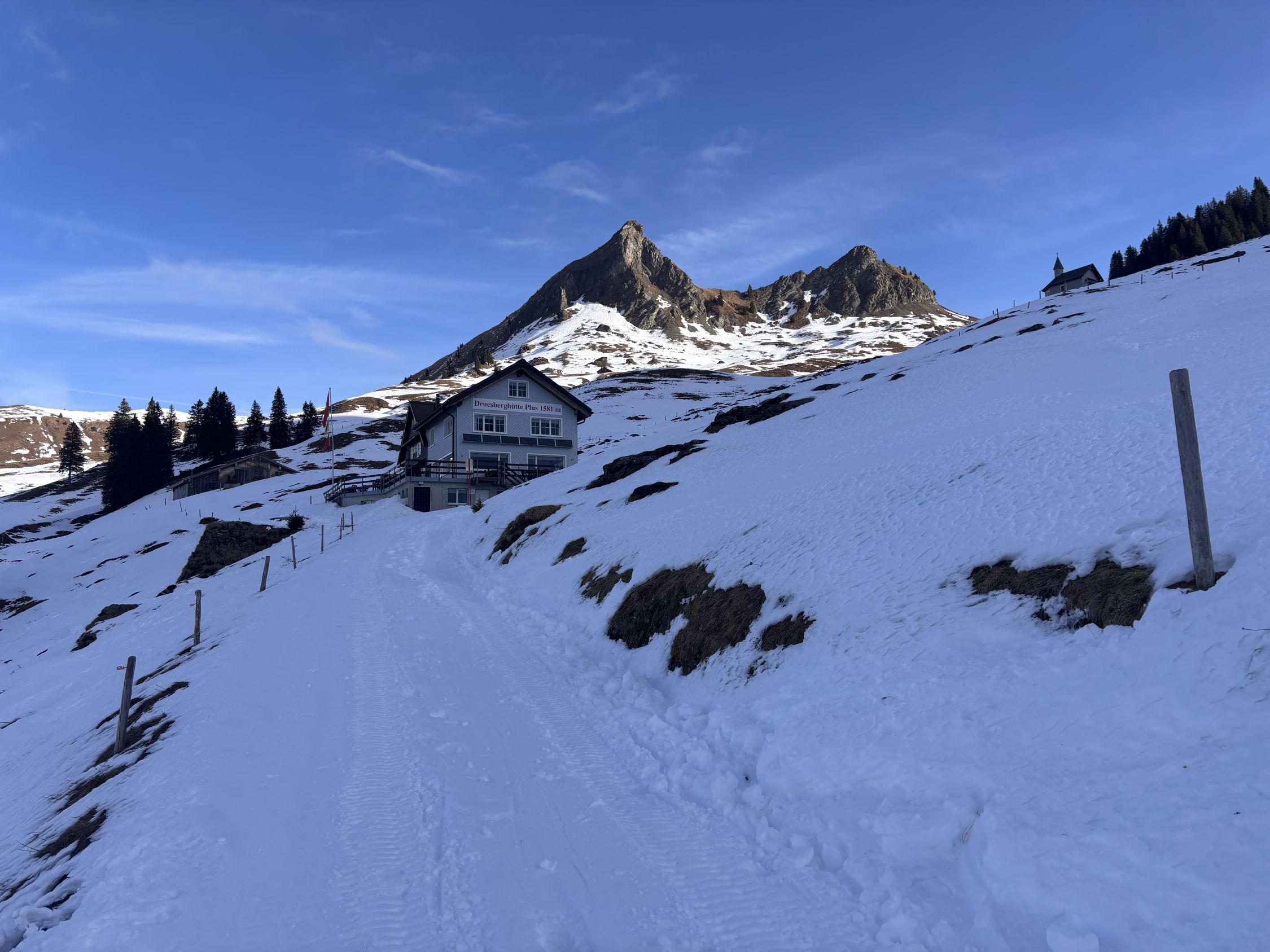 Die Druesberghütte war heute bewirtet, die Bedienung sehr freundlich und die Aprikosenwähe fabelhaft.