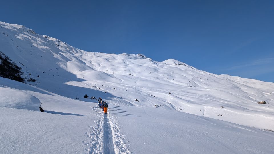 überraschend gute Schneeverhältnisse bis Fideris hinunter. Selbst in Schiers war die Langlaufloipe offen bei ca. 20cm Schnee im Grund. Südhänge gegebenüber bei Pany natürlich Schneefrei.