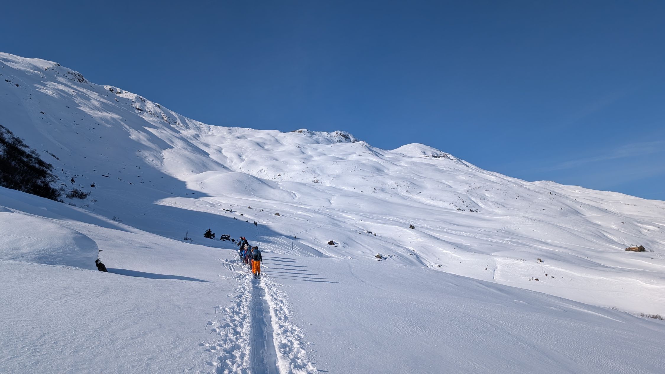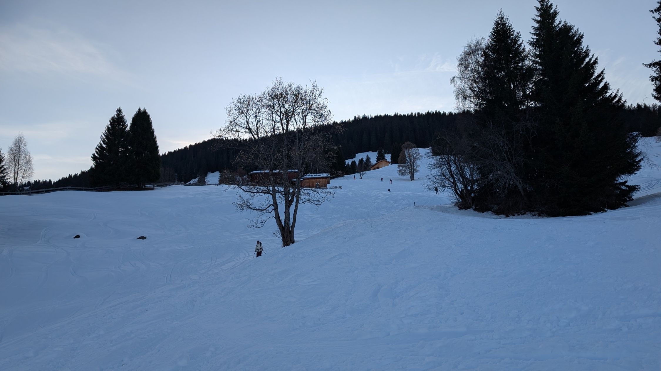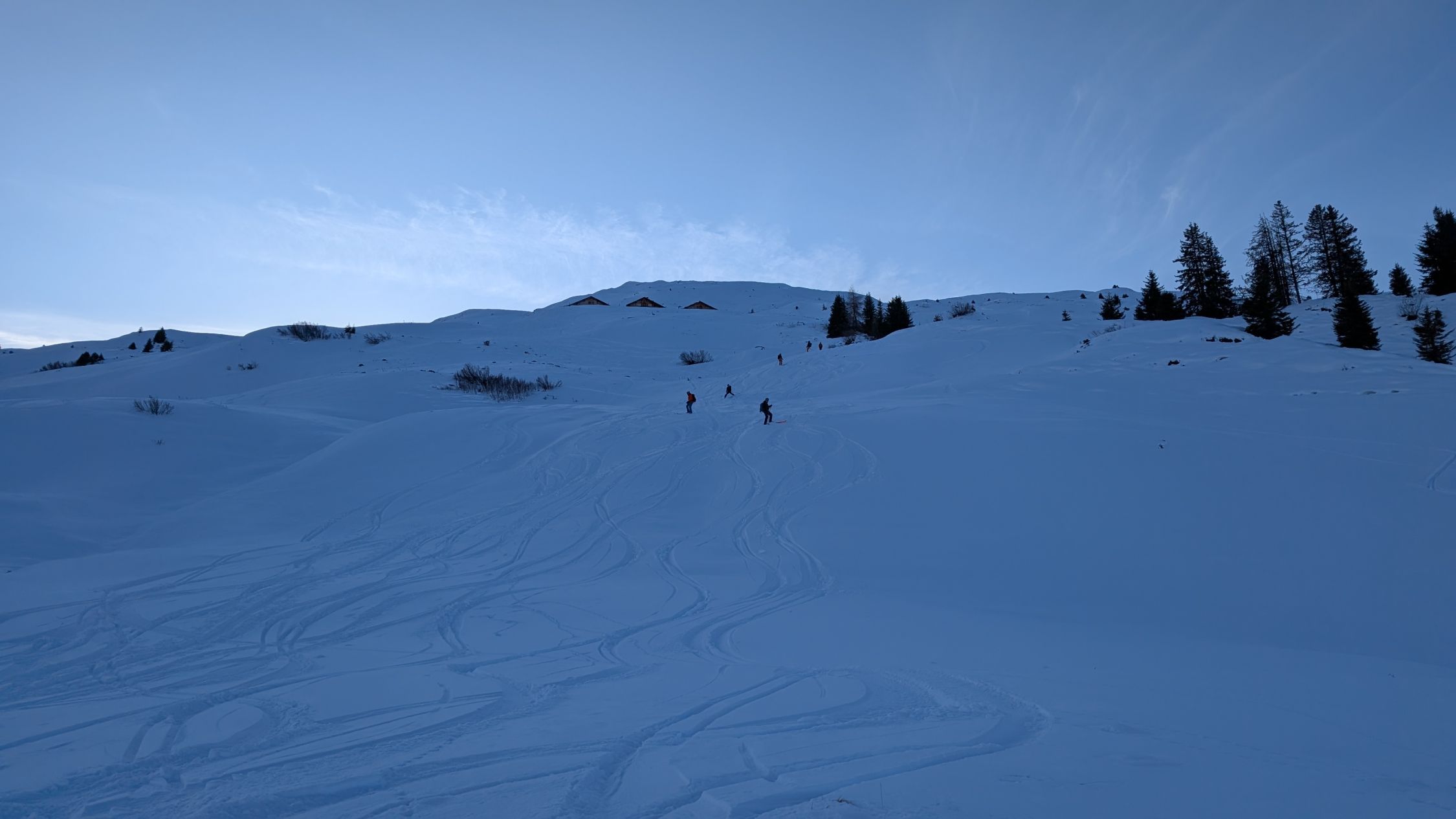 Wir sind zuerst von den Heubergen aus noch aufs Mattjischhorn und dort die direkte Nordabfahrt gemacht. Die ersten windausgesetzten Meter leicht gedeckelt, dann guter Pulver. Beim Glattwang sind wir nach Norden Richtung Fideris abgefahren. Dort gab es oberhalb von Obersäss noch einige hart gepresste Stellen und man muss den "Mouton"-Schnee suchen, daher auch nur ein gut und kein ausgezeichnet. Die Spuren im Osthang des Glattwangs hinunter sahen da besser aus (pulvrig), dann kommt man allerdings sehr früh auf den Schlittelweg. Irgendwann zwischen Obersäss und Untersäss dann durchgehend schöner Pulver und überaschenderweise selbst bei Abfahrt um 15:30 uhr nirgends gedeckelt bis Fideris. Gegen unten dann in weichen Schnee übergehend. Im Bereich < 1500hm muss man schon vorsichtig fahren, weil wegen der geringen Schneeauflage hier schon viele Geländeunebenheiten vorhanden sind und auch einige Steine herausschauen. Bei den Engstellen, z.b. durch den Wald oder auch gegen unten natürlich auch schon verfahren.