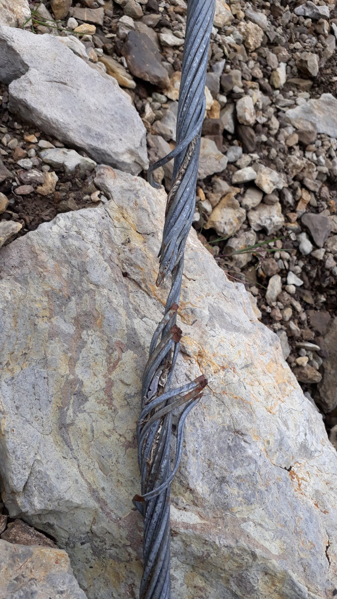 Das erste Stahlseil der Seilserie wenn es auf den Gipfel zugeht ist mit grosser Vorsicht (bzw. besser gar nicht) zu geniessen (s. Foto). Von unten kann man freilich nicht sehen, wie es weiter oben aussieht (gilt ja eigentlich immer...).