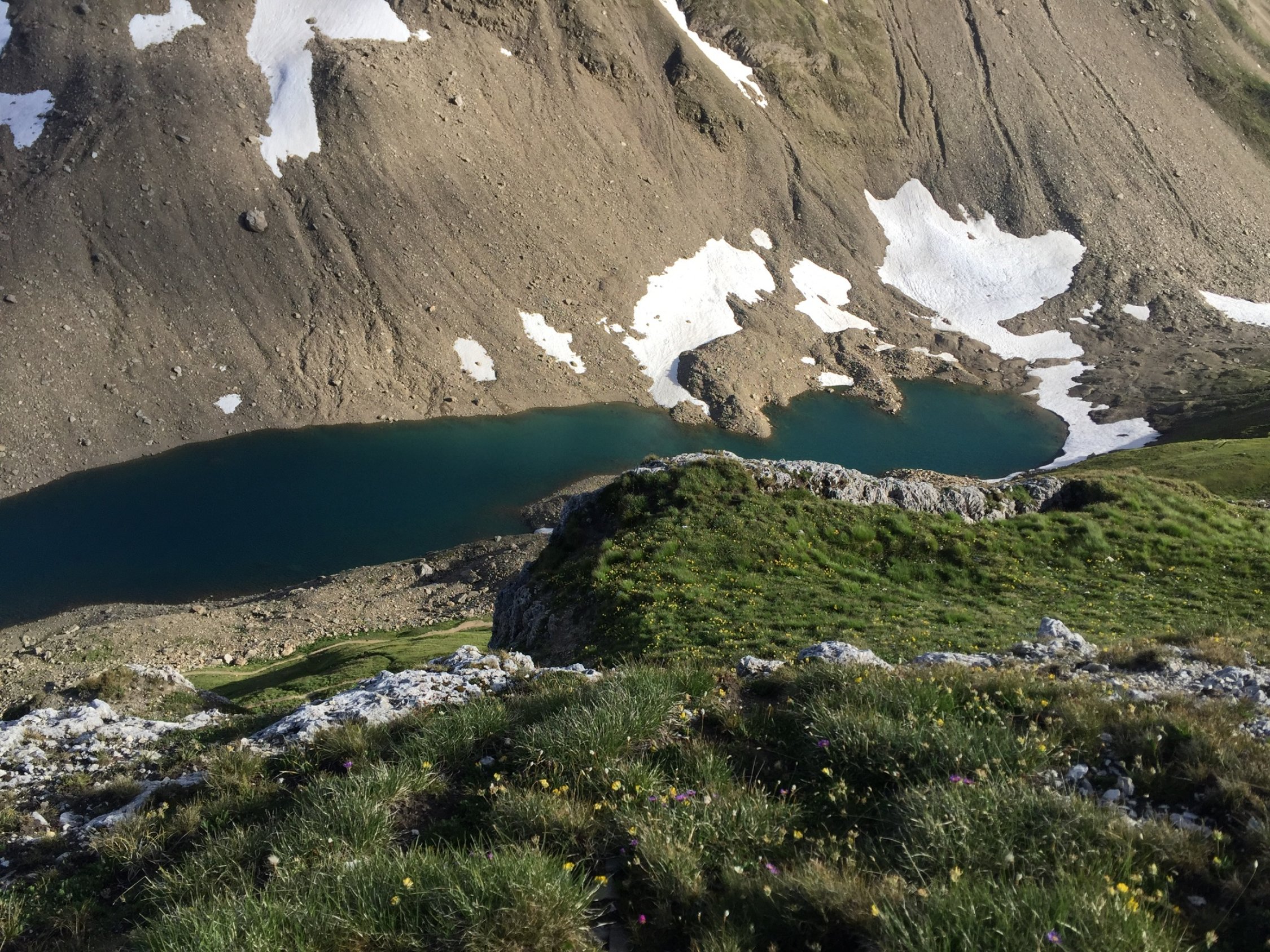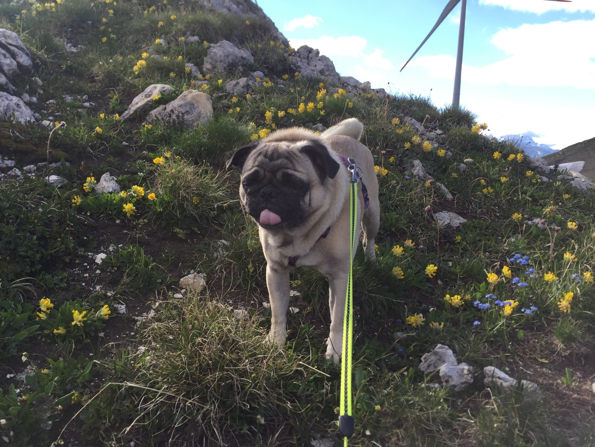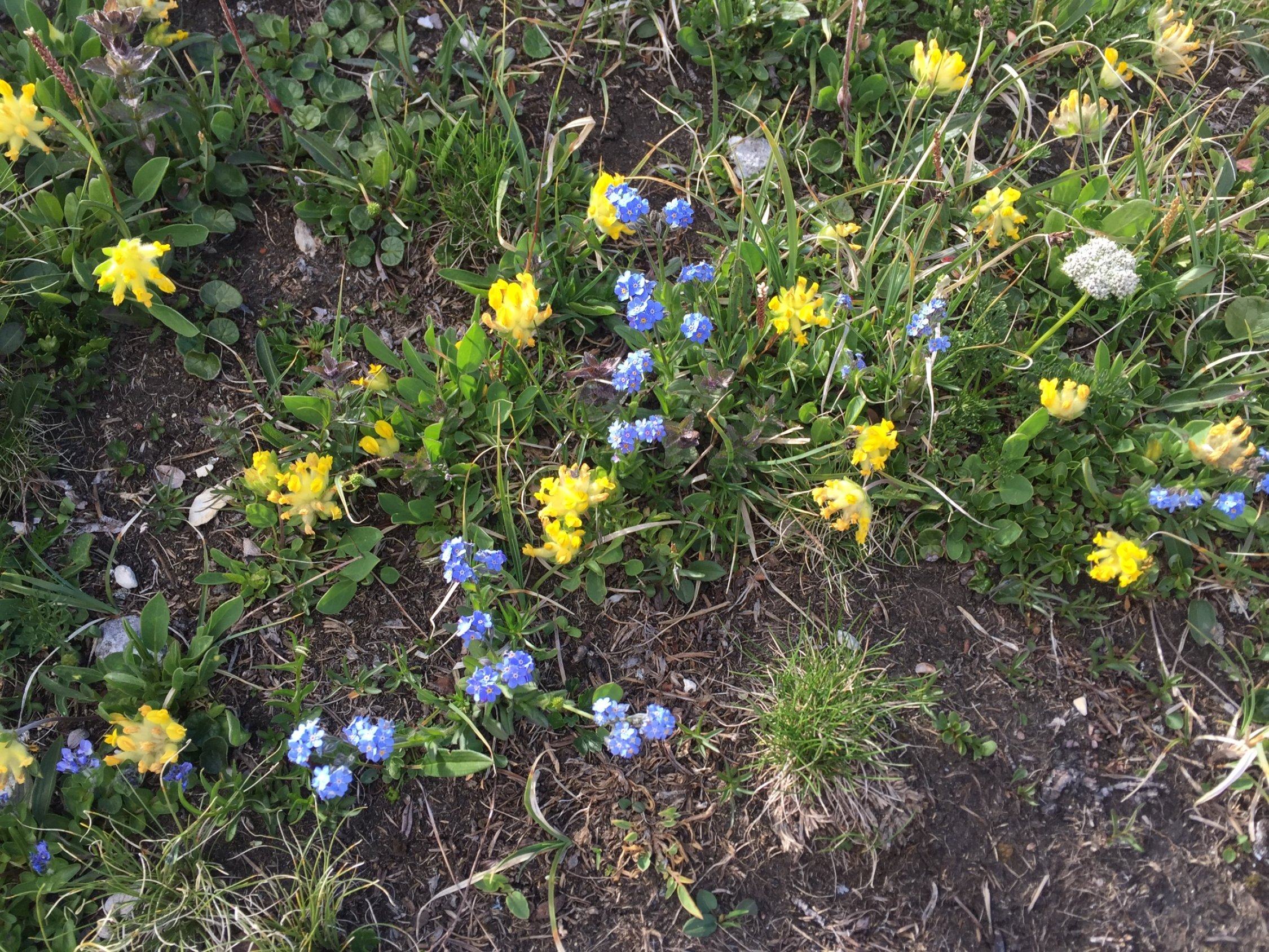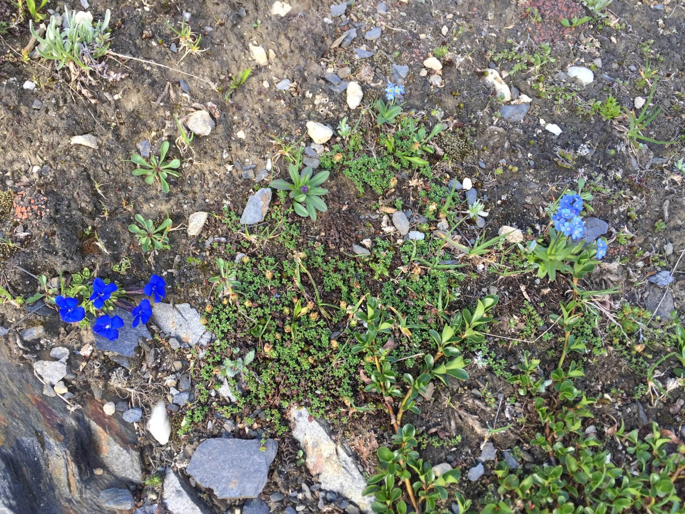 Abendwanderung auf dem Weg zu einem Geschaeftstermin im Tessin, ich wollte mal das mir bisher unbekannte Gebiet am Nufenen kennen lernen, um fuer Skitouren zu rekognoszieren. Vor allem Richtung Blinnenhorn, das schon lange auf meiner Wunschliste steht, gingen meine Blicke. Der stark schmelzende Griesgletscher ist immer noch eine imposante Erscheinung, elegant liegt er da. Sieht relativ spaltenarm aus, jedenfalls da, wo die Skiroute durchgeht. Da ich derzeit den Familienmops hueten muss, war der auch dabei. Das limitierte mich am Gipfelgrat, der ist nicht mopstauglich. Entsprechend Umkehr auf gut 2700 M. Sehr schoene, wilde Landschaft. Die Blumenpracht war ein Genuss.