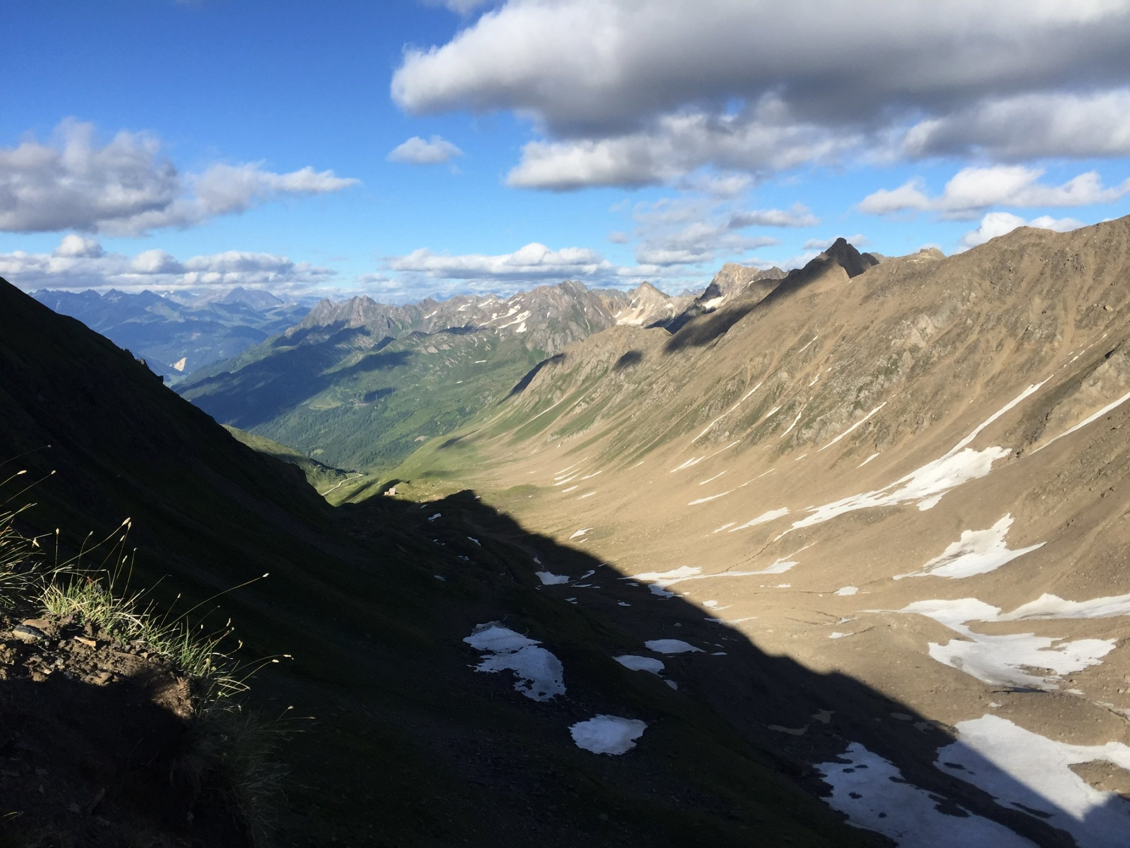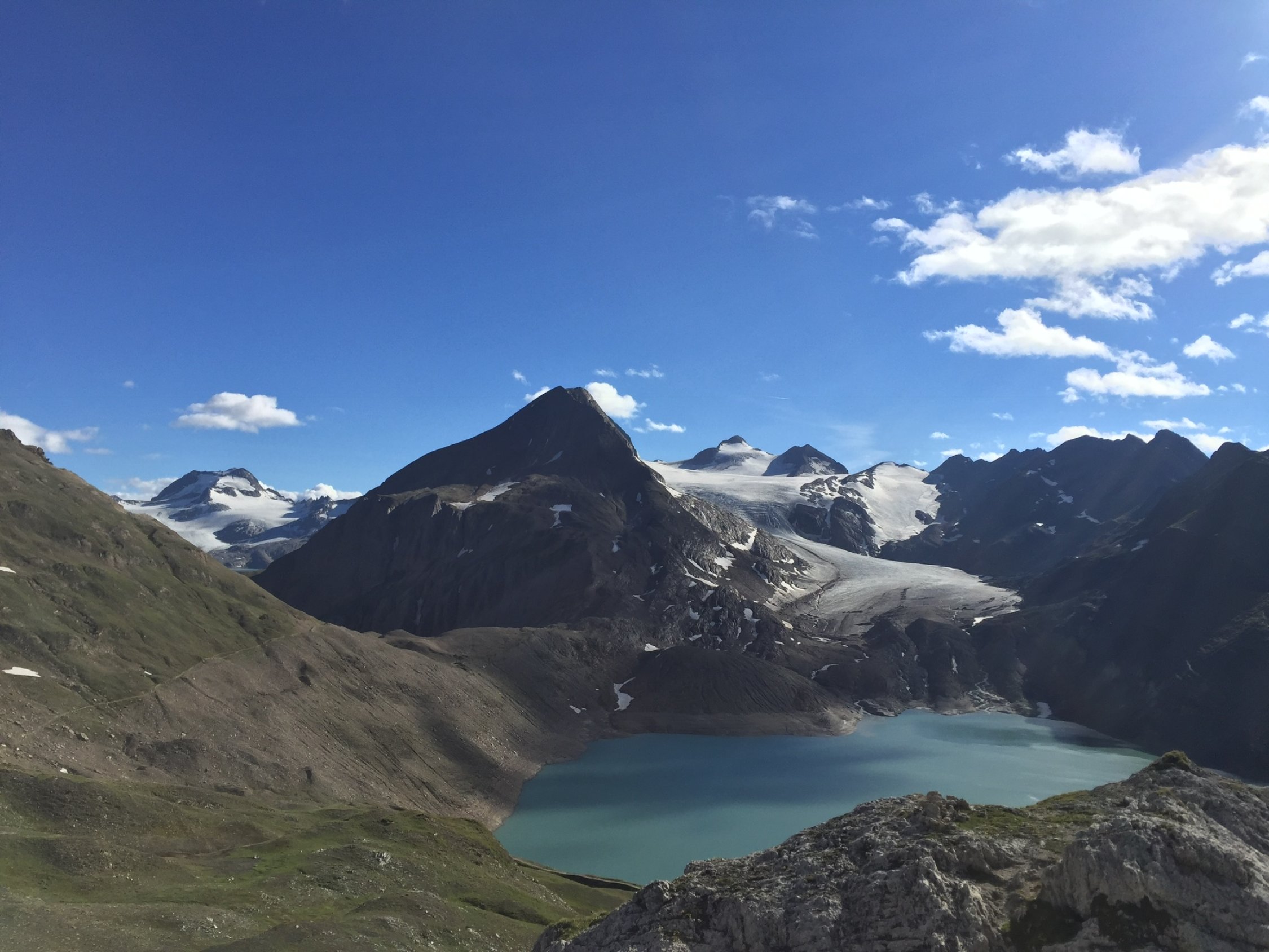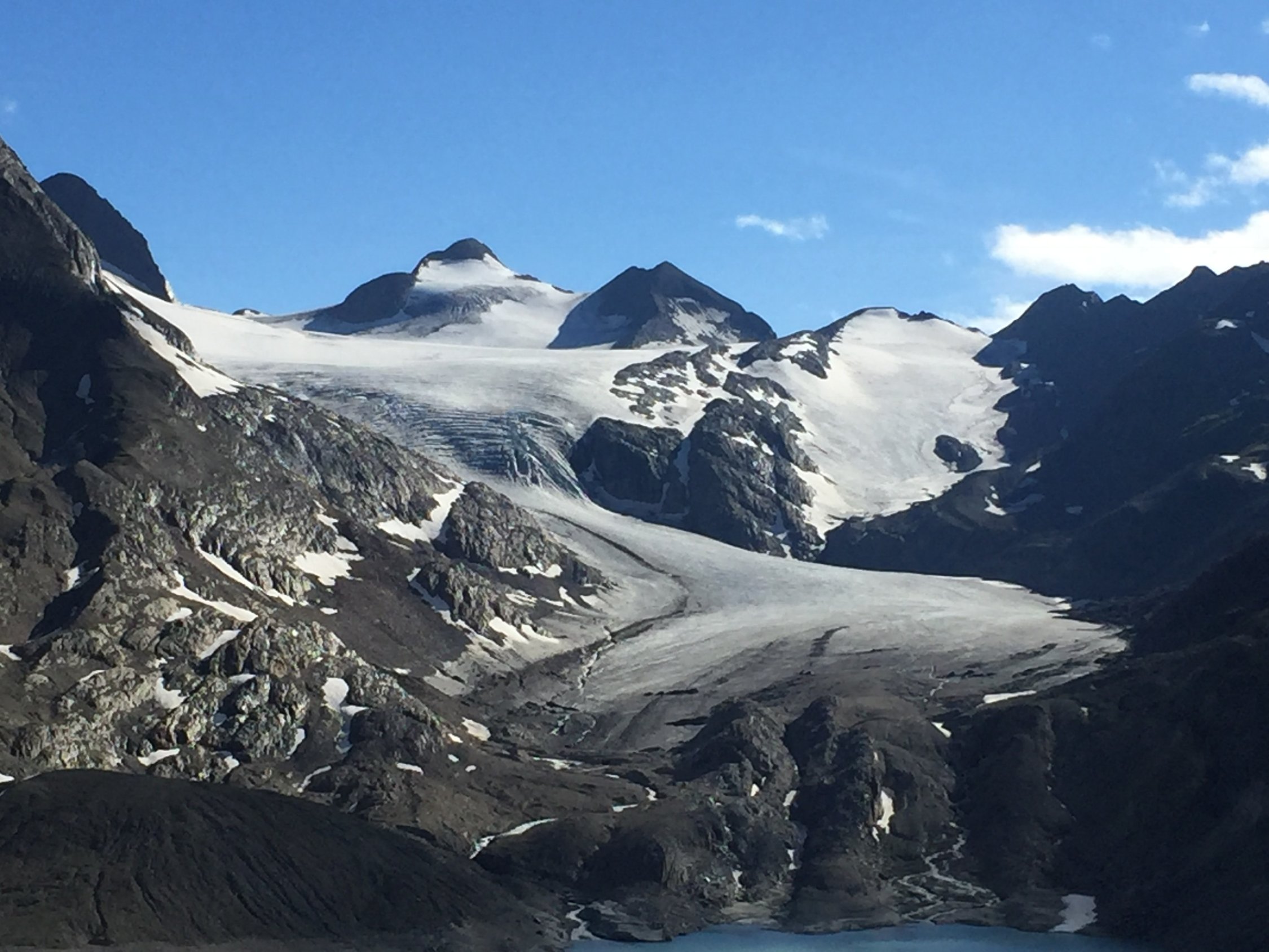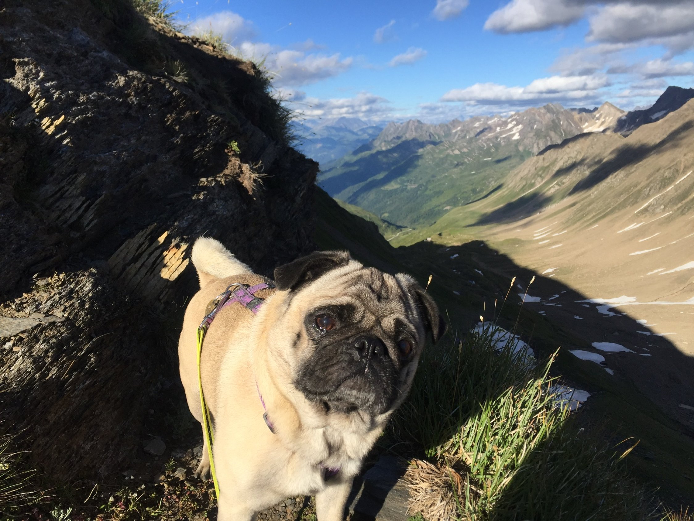 Abendwanderung auf dem Weg zu einem Geschaeftstermin im Tessin, ich wollte mal das mir bisher unbekannte Gebiet am Nufenen kennen lernen, um fuer Skitouren zu rekognoszieren. Vor allem Richtung Blinnenhorn, das schon lange auf meiner Wunschliste steht, gingen meine Blicke. Der stark schmelzende Griesgletscher ist immer noch eine imposante Erscheinung, elegant liegt er da. Sieht relativ spaltenarm aus, jedenfalls da, wo die Skiroute durchgeht. Da ich derzeit den Familienmops hueten muss, war der auch dabei. Das limitierte mich am Gipfelgrat, der ist nicht mopstauglich. Entsprechend Umkehr auf gut 2700 M. Sehr schoene, wilde Landschaft. Die Blumenpracht war ein Genuss.