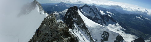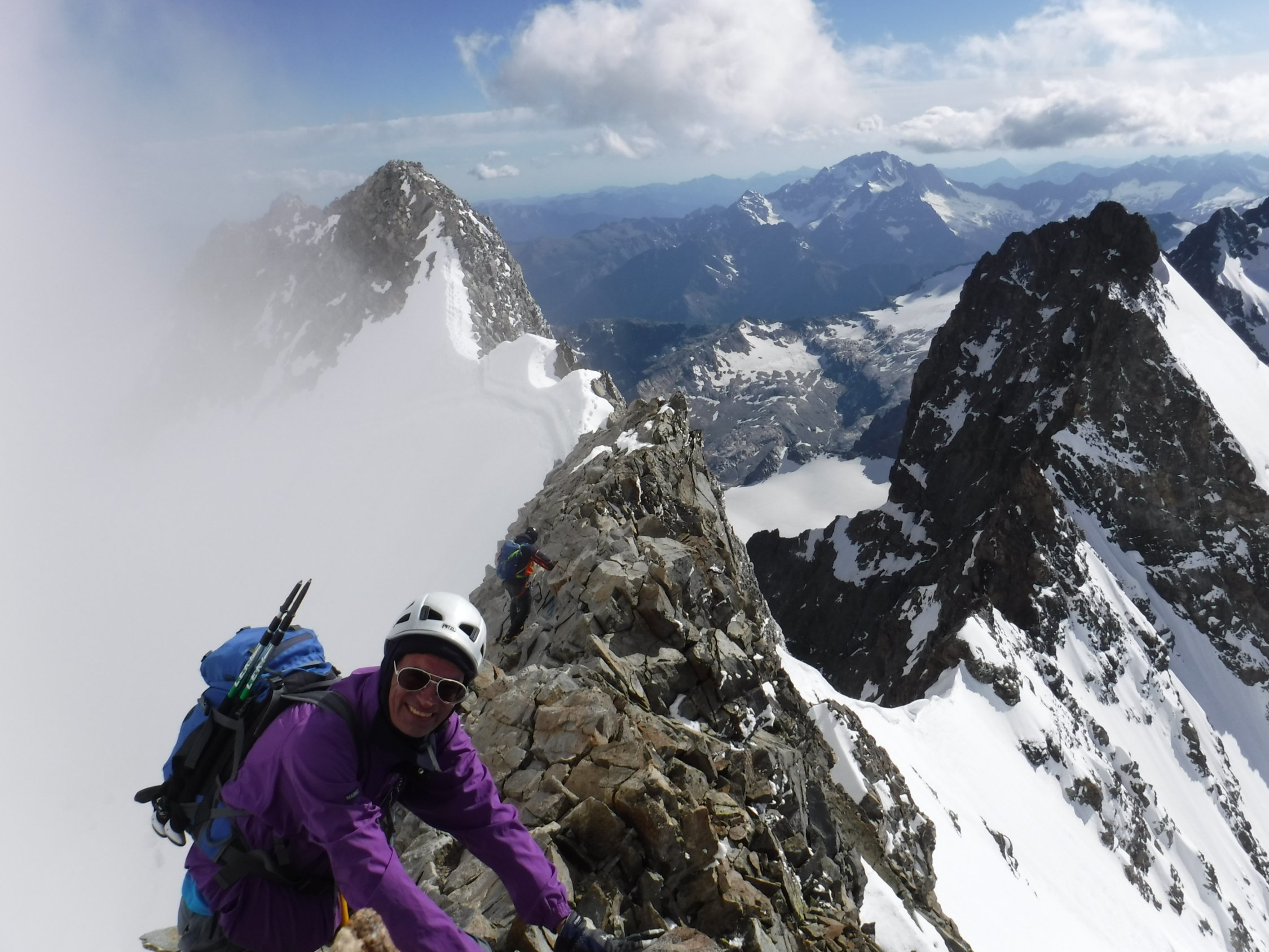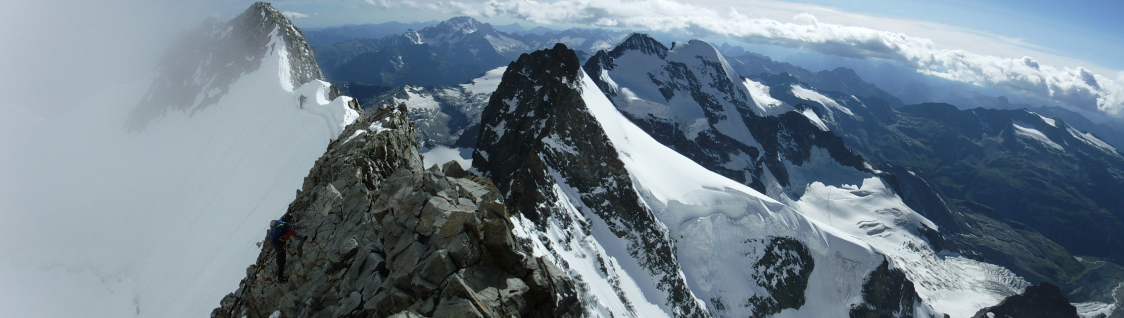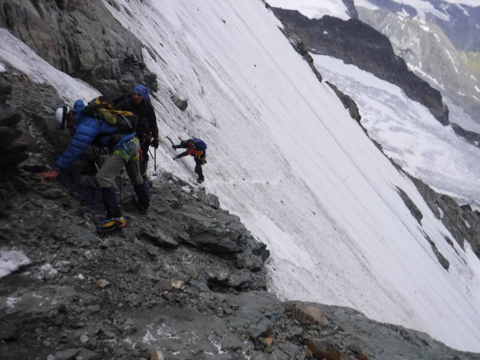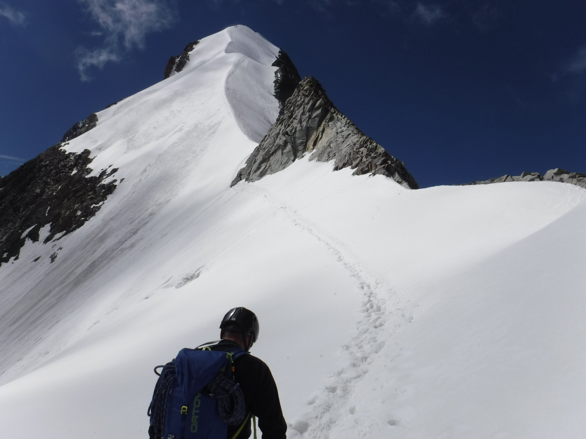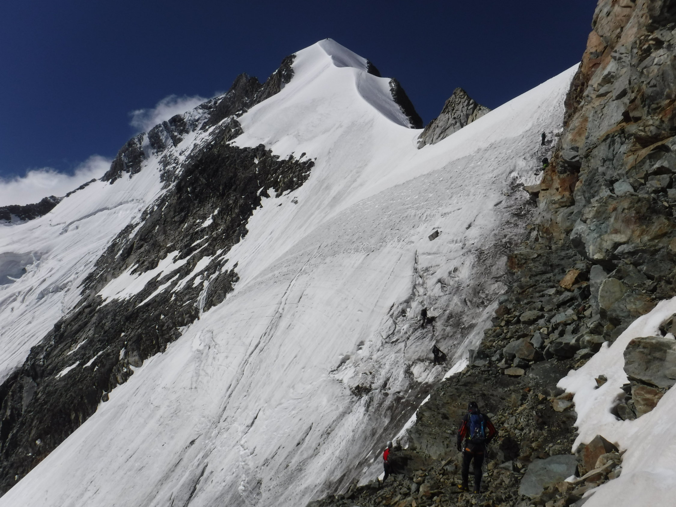 Bergüberschreitung von Tschiervahütte mit Davide und Luigi aus dem Veltliner Tal, und Kilian aus Schottland bis zur Rifugio Marco e Rosa, von wo sie auf italienischer Seite abstiegen. Danke für die Seilpartnerschaft !