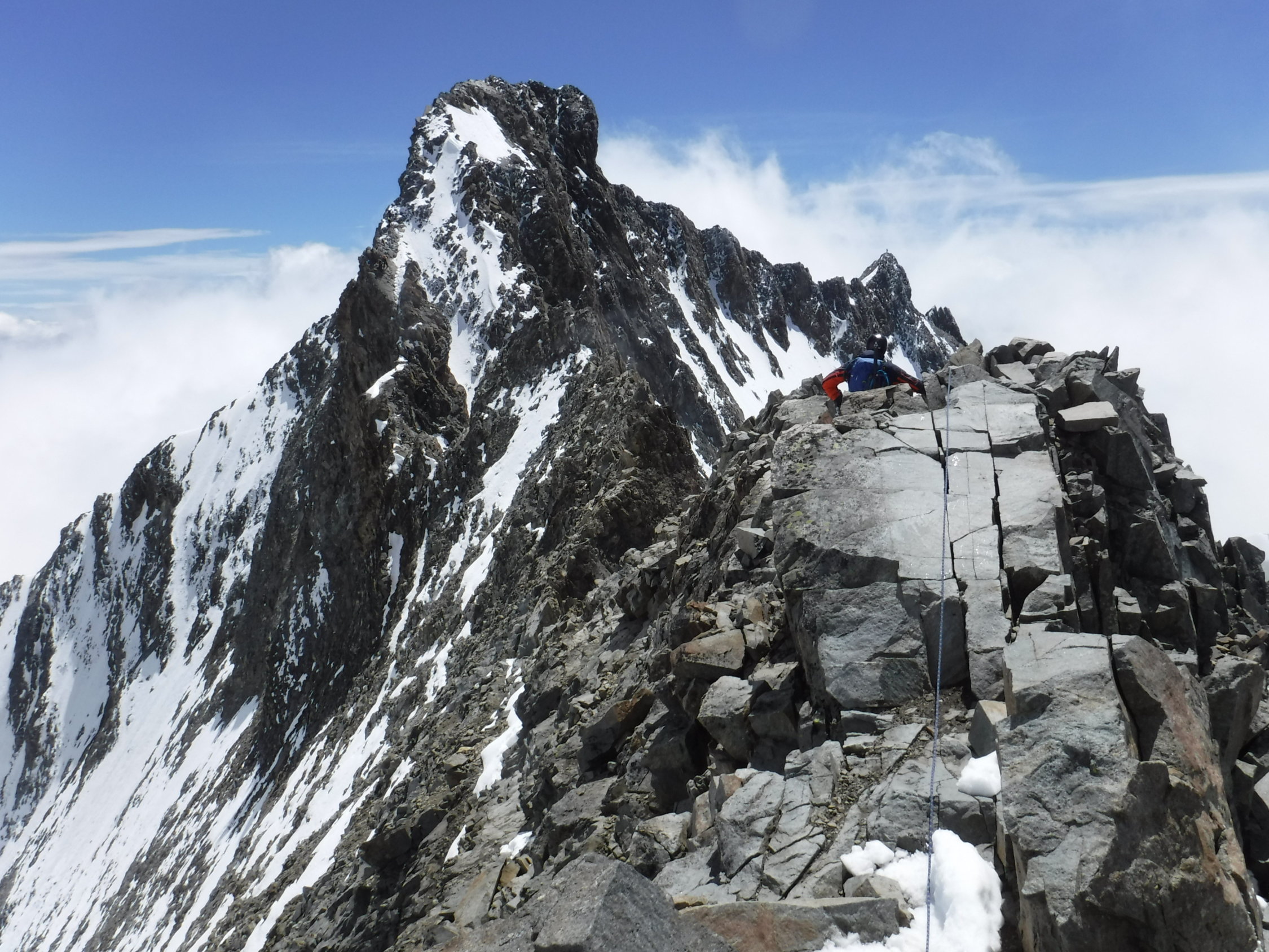 Die Fortezza bin ich abgeklettert, mit Ausnahme der untersten Steilstufe, wo ich mich dem vorhandenen Seil einer engadiner Kletterfamilie dankenswerterweise bedienen durfte.