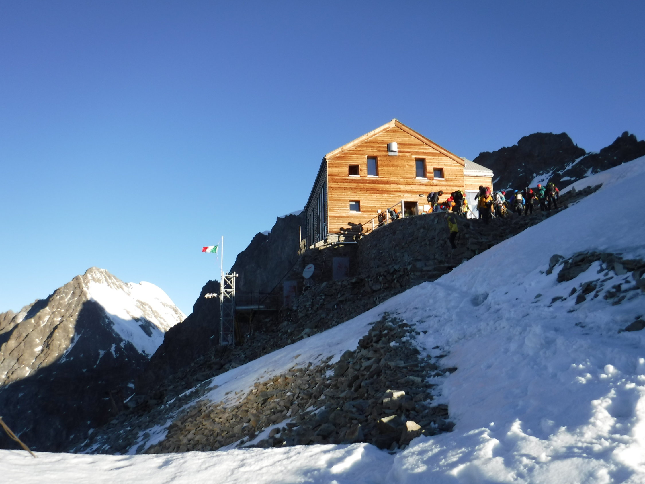 Die Rifugio Marco e Rosa war ausgebucht. Dennoch fanden wir als Späteintrudler Nachtlager in der alten Hütte mit der quietschenden Blechtür bei jeder Windböe (weil sie kaum einer der Nächtiger richtig zuschloss). Super einfach denkendes Personalteam dort oben. ÜN mit Frühstück für AV-Mitglieder: € 55,00 (Stand 2017).