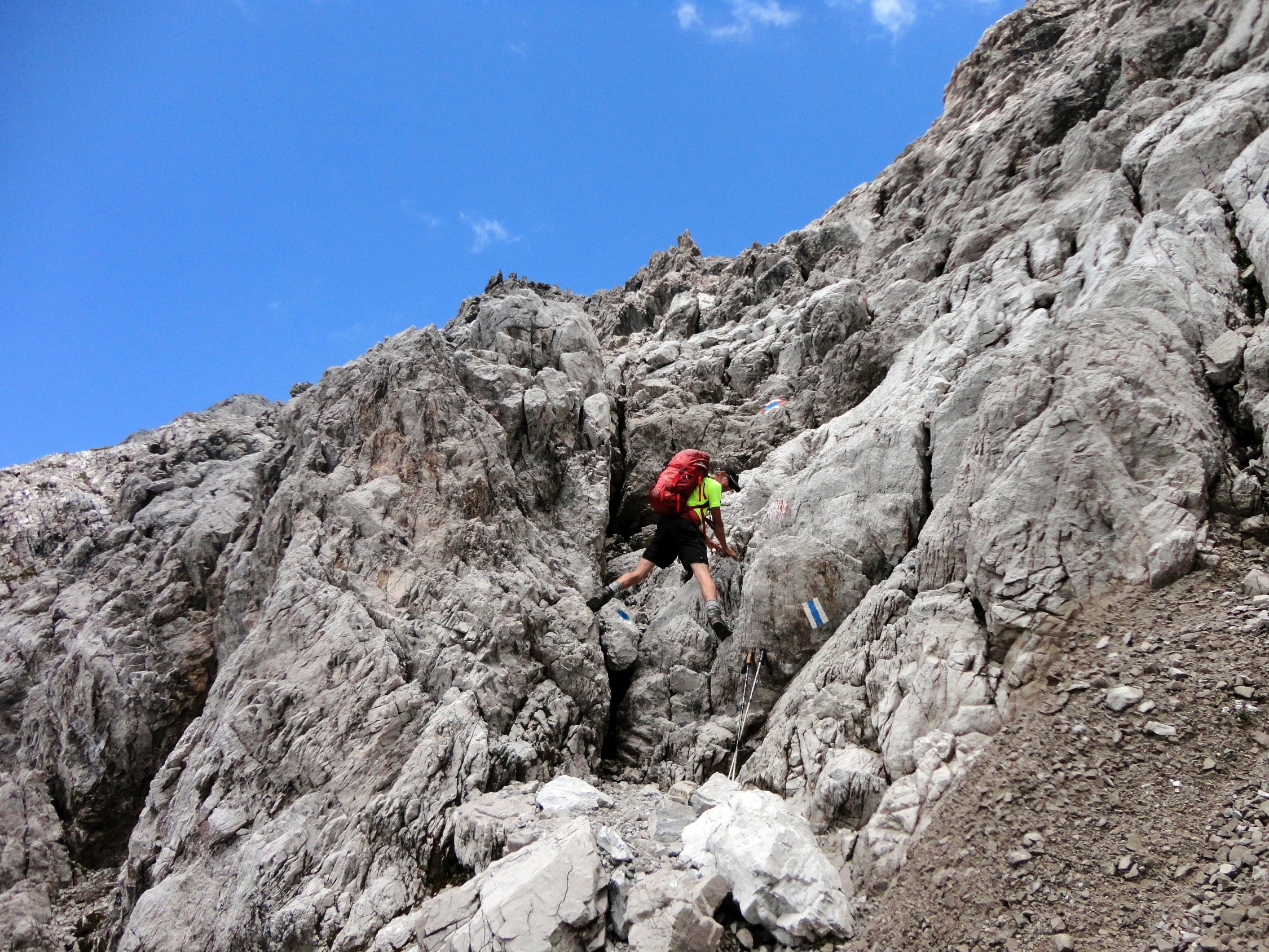 Bis auf den Grataufstieg zur Butzenspitze markierte und bez. Steige, die teilweise durch schuttiges und felsiges Gelände führen und Trittsicherheit erfordern. Kritische Stellen sind seilversichert. Am Steig durch die Südflanke in regelmässigen Abständen Bohrhaken, die aber nicht wirklich Sinn machen.