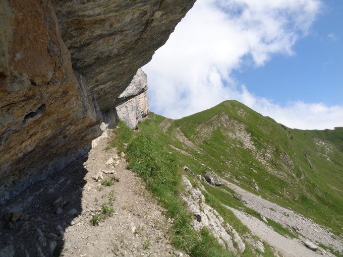 Rückweg Richtung Widderfeld und am Fusse des Widderfeld über den blau markierten Weg durch das Loch am Widderfeld Richtung Birchboden.
