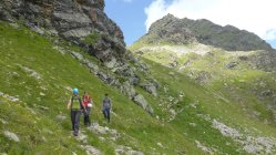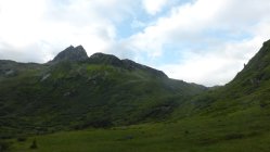 Nach dem Durchzug der nächtlichen Gewitter war es noch längere Zeit bedeckt und erst beim Unteren Vallülasee ließ sich die Sonne blicken. Da konnten endlich die tropfnassen Hosen, Socken und Schuhe etwas trocknen. Im Aufstieg durch die Vallülaalpen zum Oberen Vallülasee kam man stets mit tropfnassen Langgräsern und Büschen in Berührung.