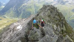 Die geführte NF-Tour stand unter dem Titel „Anspruchsvolle Tour mit rassigem Finale in der herrlicher Bergkulisse der Silvretta“, der sich drei begeisterten Bergsteigende angeschlossen haben. Mir wurde bestätigt, dass der Slogan die Tour sehr passend umschreibt.