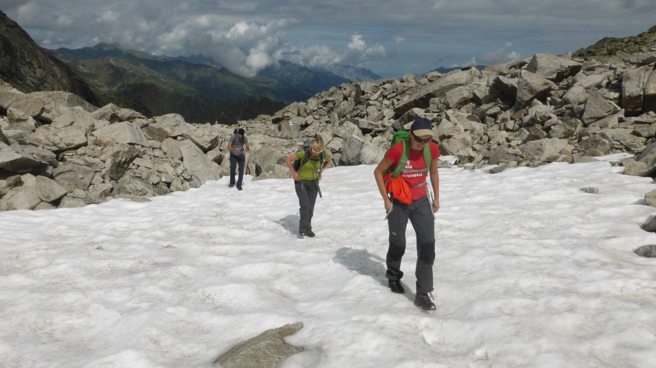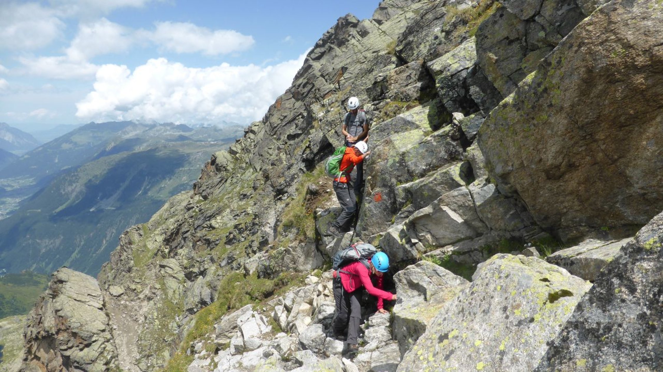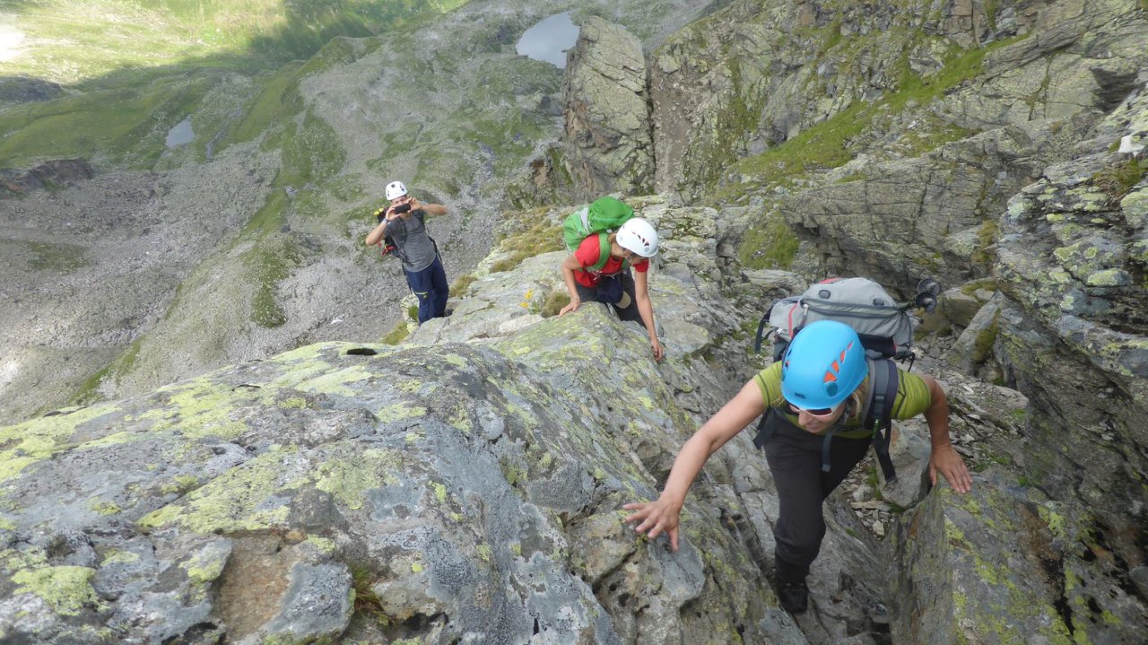 Der Fels bei den kurzen Kletterstellen war bereits gut getrocknet, sodass die typischen Flechten auf dem Gneisgestein nicht mehr arg störten. Diese können bei Nässe glatt wie Schmierseife sein und erfordern absolute Vorsicht. Der weitere Tourentag verlief sehr freundlich und gewährte schöne Rundblicke.