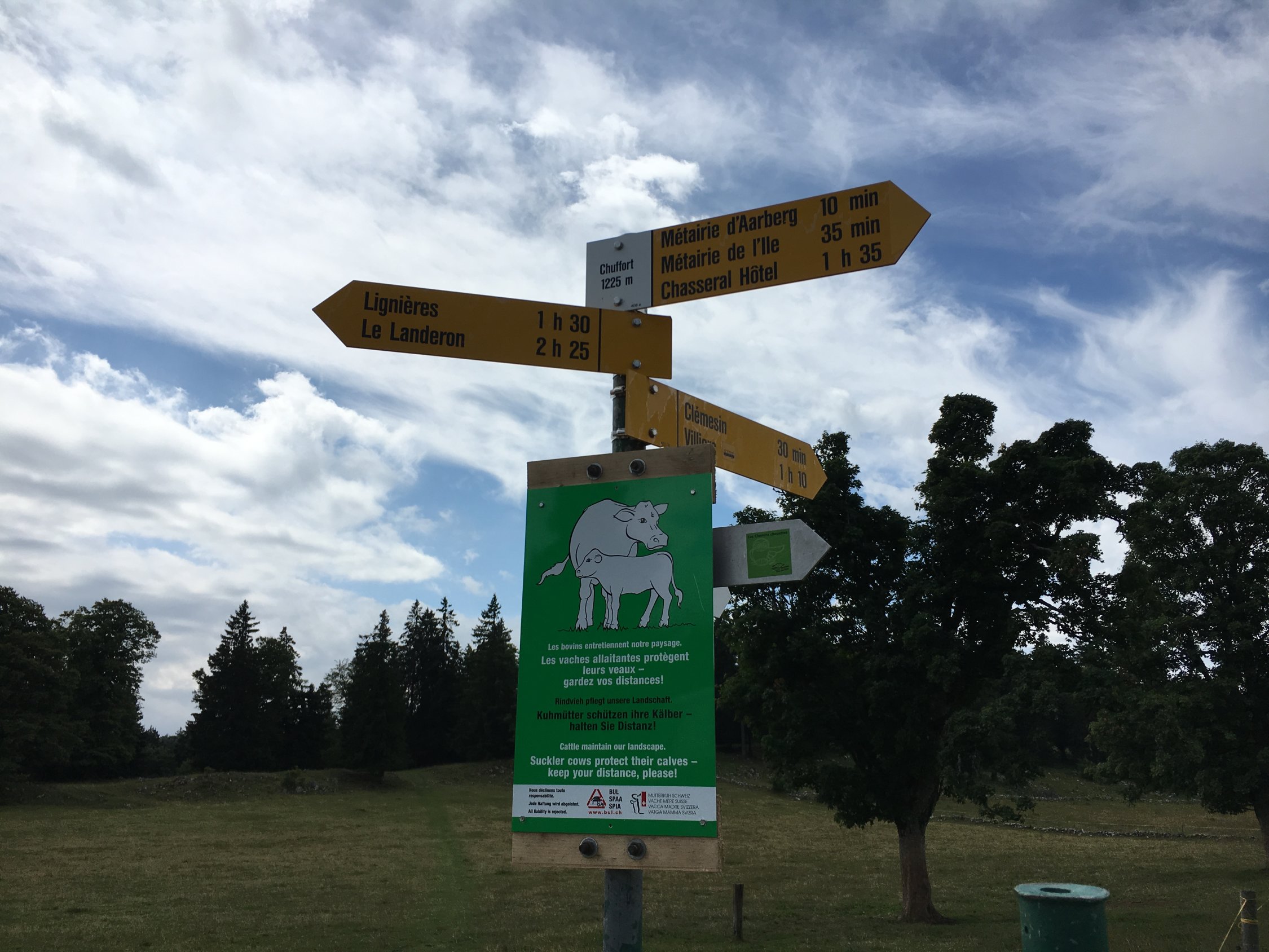 Vom Bahnhof Neuchâtel über Enges bis Lordel. Nach links abzweigen, auf Asphaltstrassen und Forstwegen bis zum Gestüt La Dame (1217m).