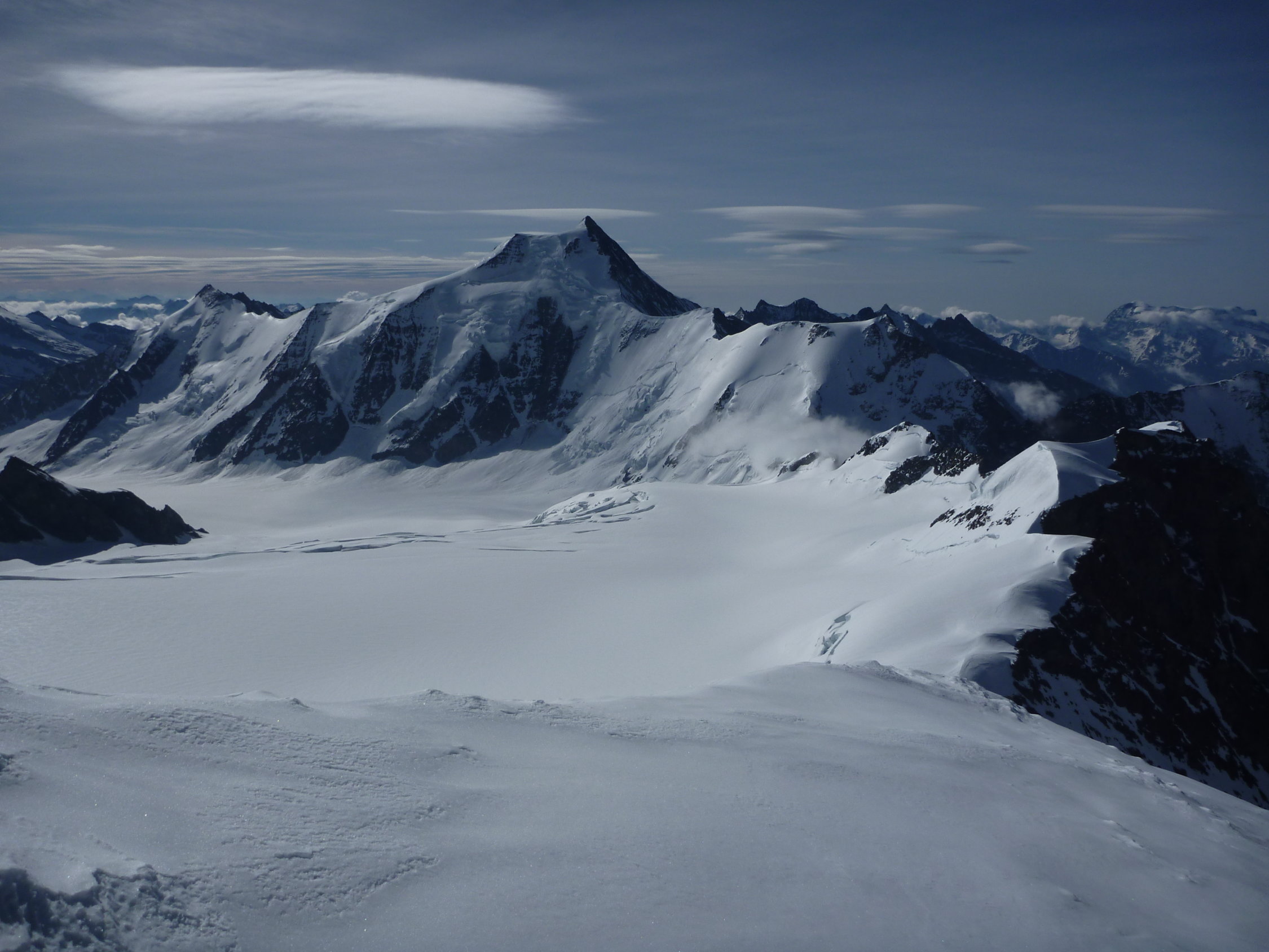 Mittaghorn (3892m): Mittagshorn von Hollandia / Abfahrt Anengletscher