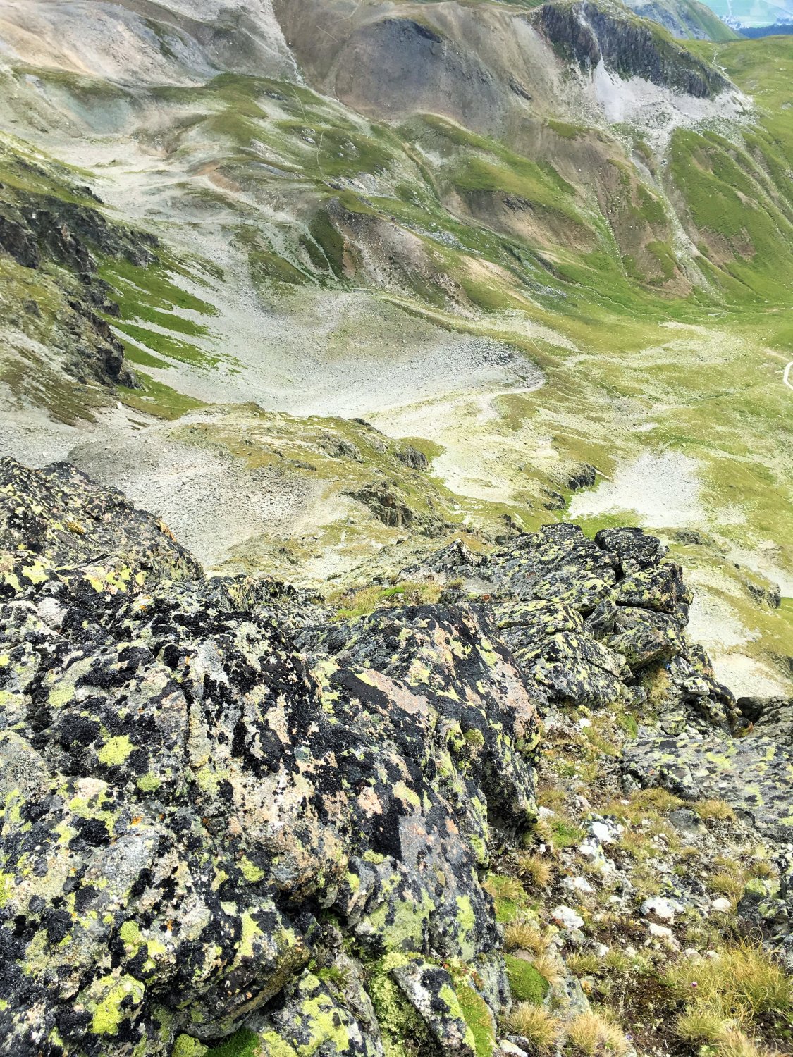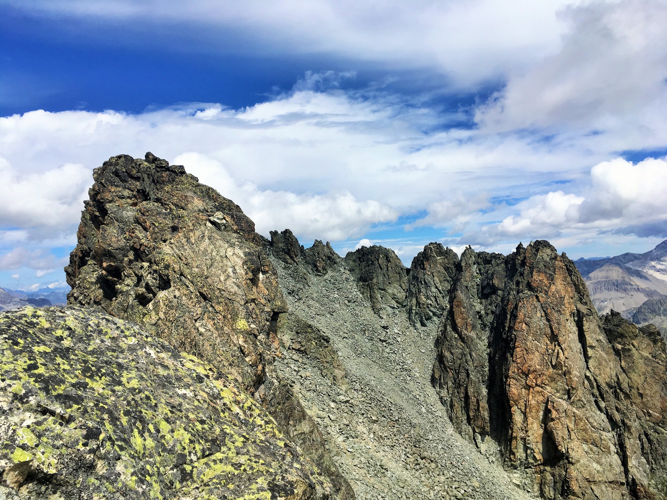 Ich habe mir die letzten Meter auf den Gipfel geschenkt, war alleine unterwegs und war mir etwas zu ausgesetzt die Kletterei (III). Im Abstieg bin ich das grosse Geröllcouloir Richtung Osten abgestiegen. Mit entsprechendere Vorsicht gut machbar, T4.
