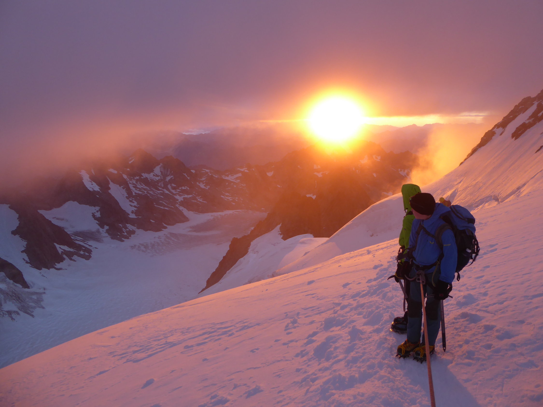 Barre des Écrins (4101m): Nordflanke und Westgrat vom Réfuge Ecrins