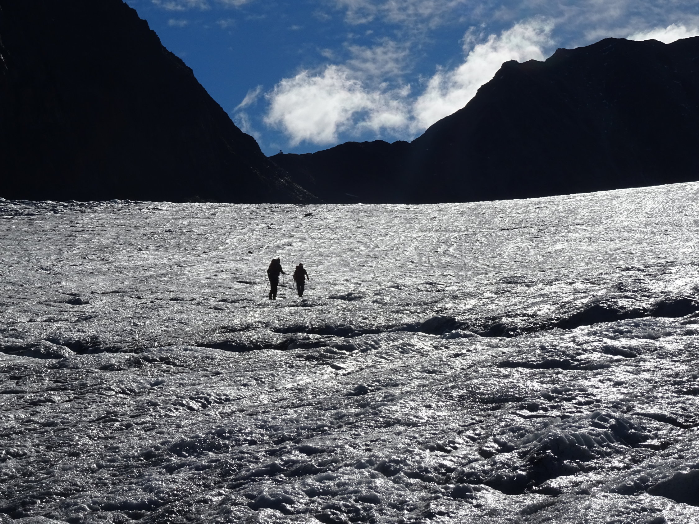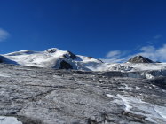 Gletscher bis 3000m aper, dann einige Spalten zum Rüberspringen (Vorsicht!! teils schon tiefe Löcher); Schnee und Spur teilweise sehr tief und anstrengend; Gipfelgrat problemlos;
