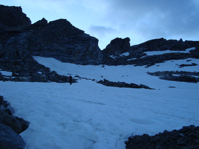 Trotz Regen in der Nacht war der Grat fast komplett trocken. Die Schneefelder im Abstieg waren leider nur noch klein.