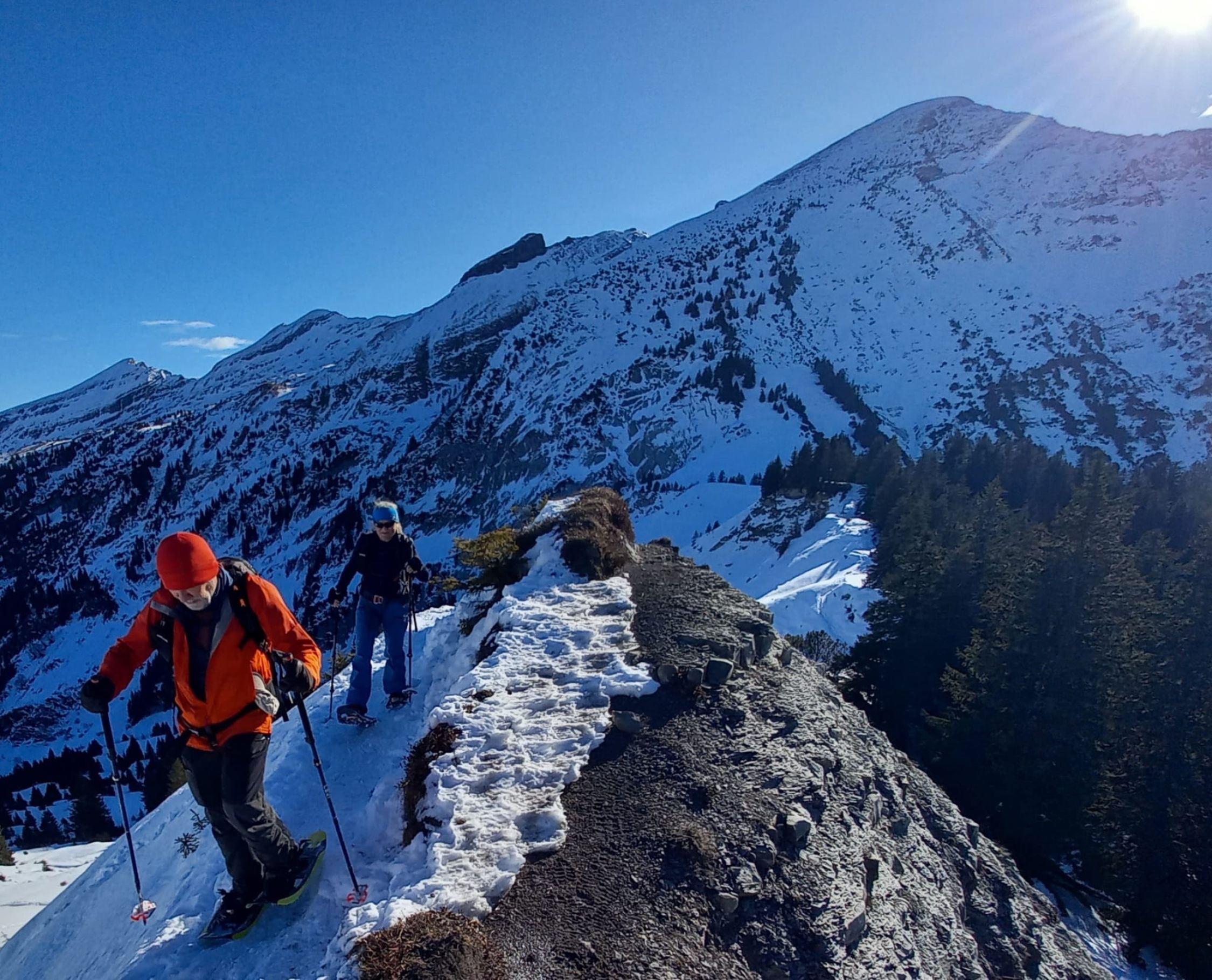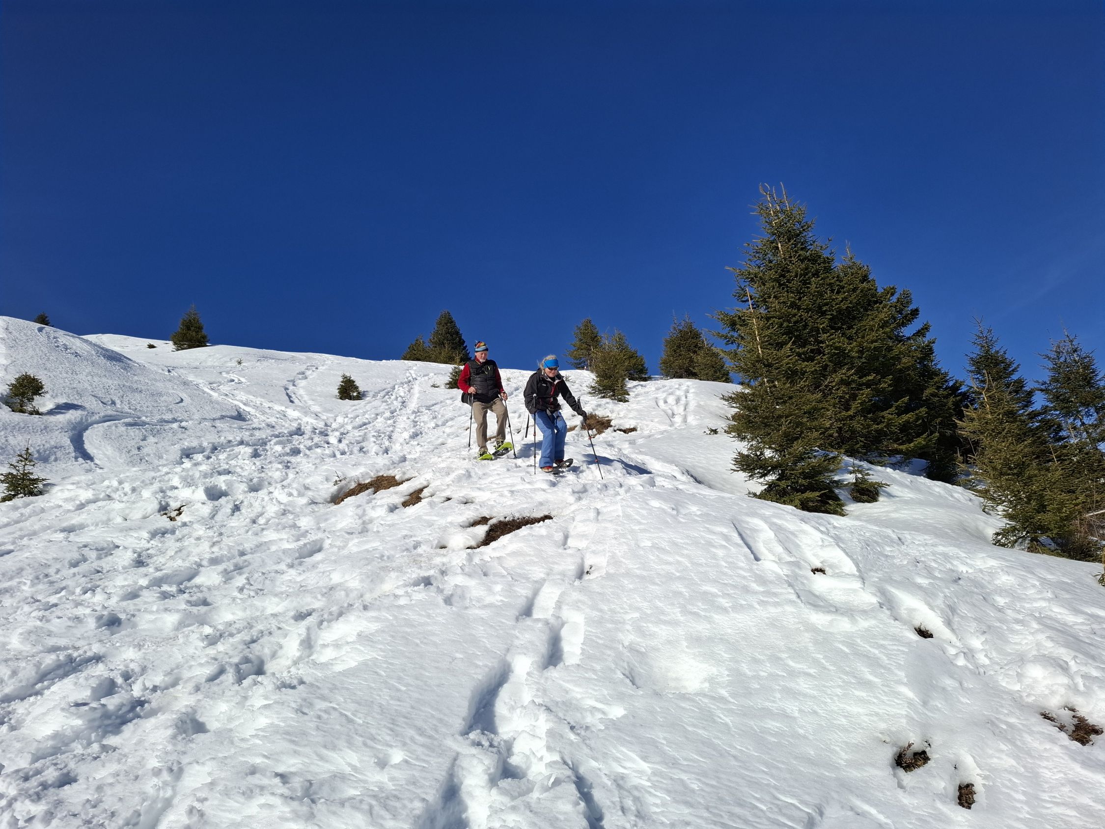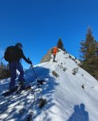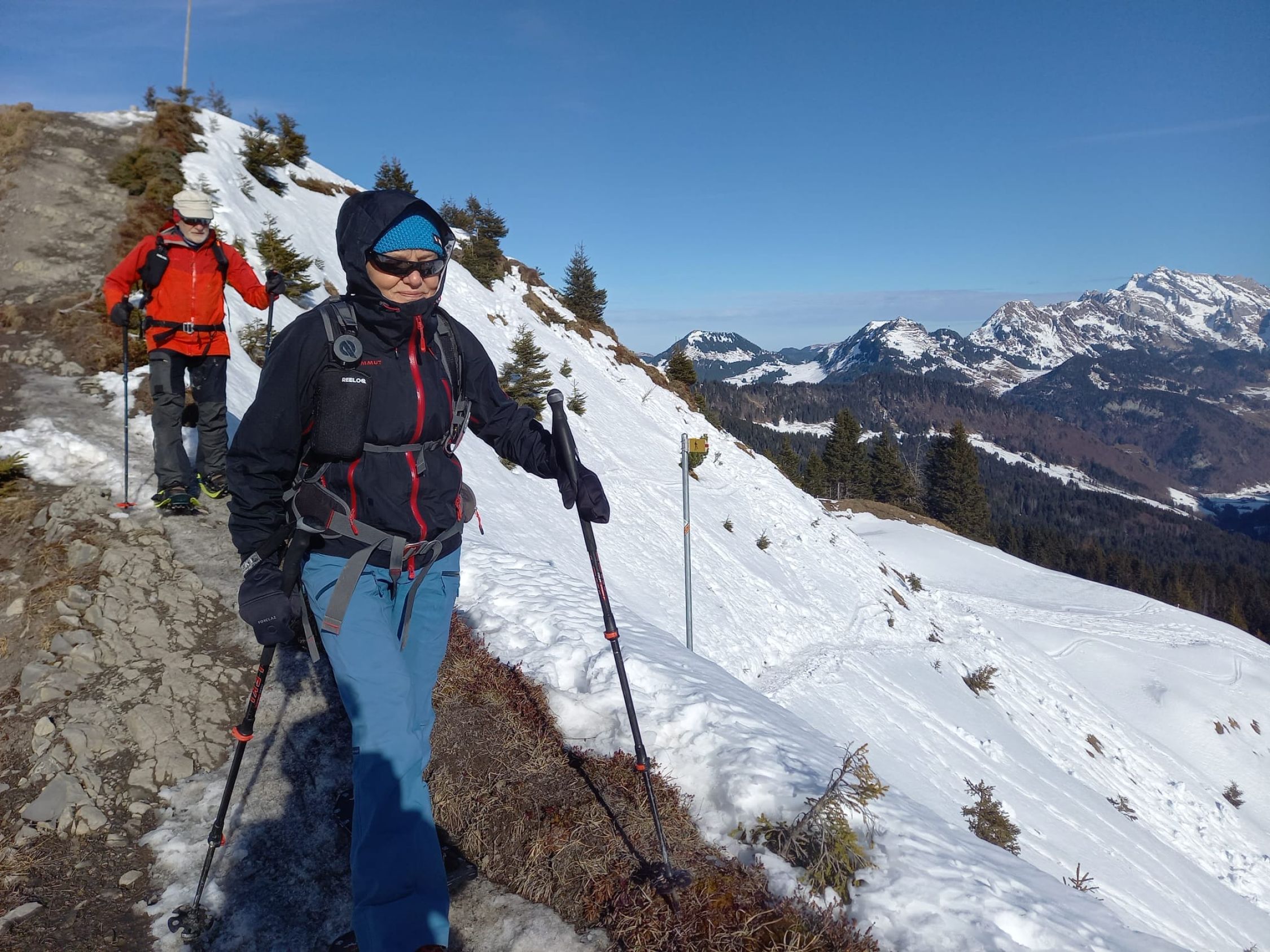 genug Schnee entlang des Trails. Der Weg war gut ausgetreten und hart. Im Abstieg, an der Ostseite des Flügespitzes, war der Schnee schon ziemlich weich.