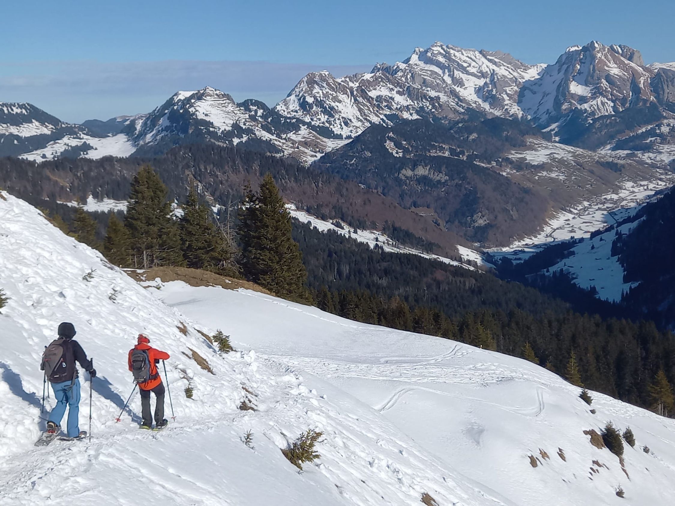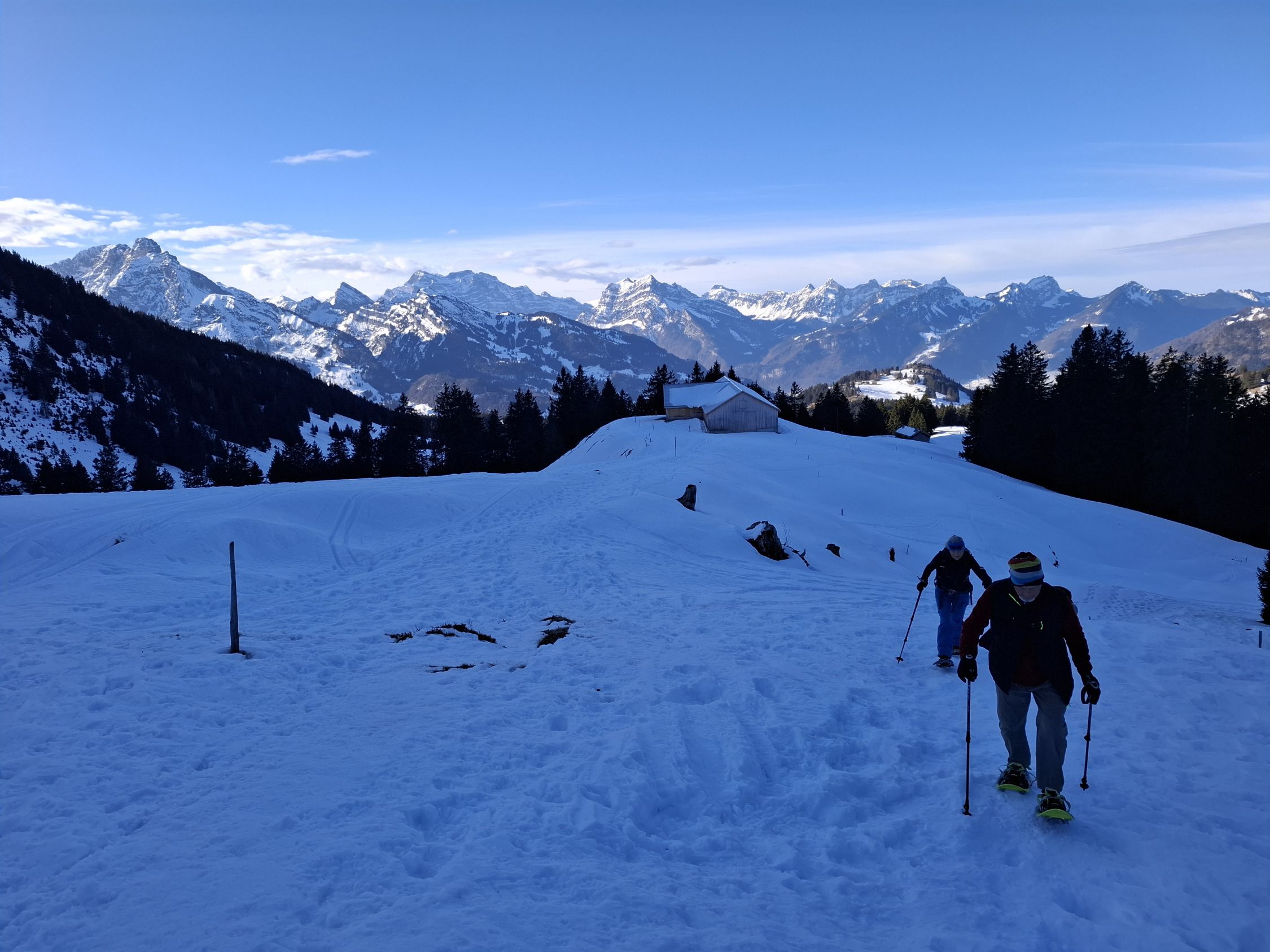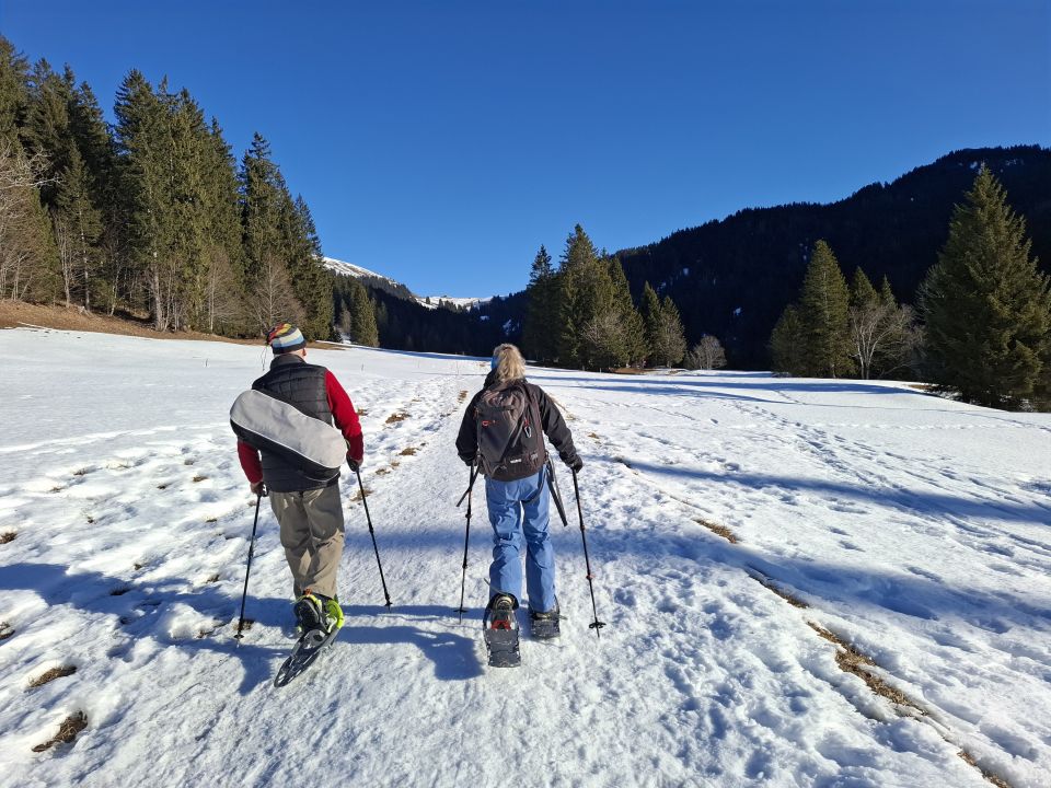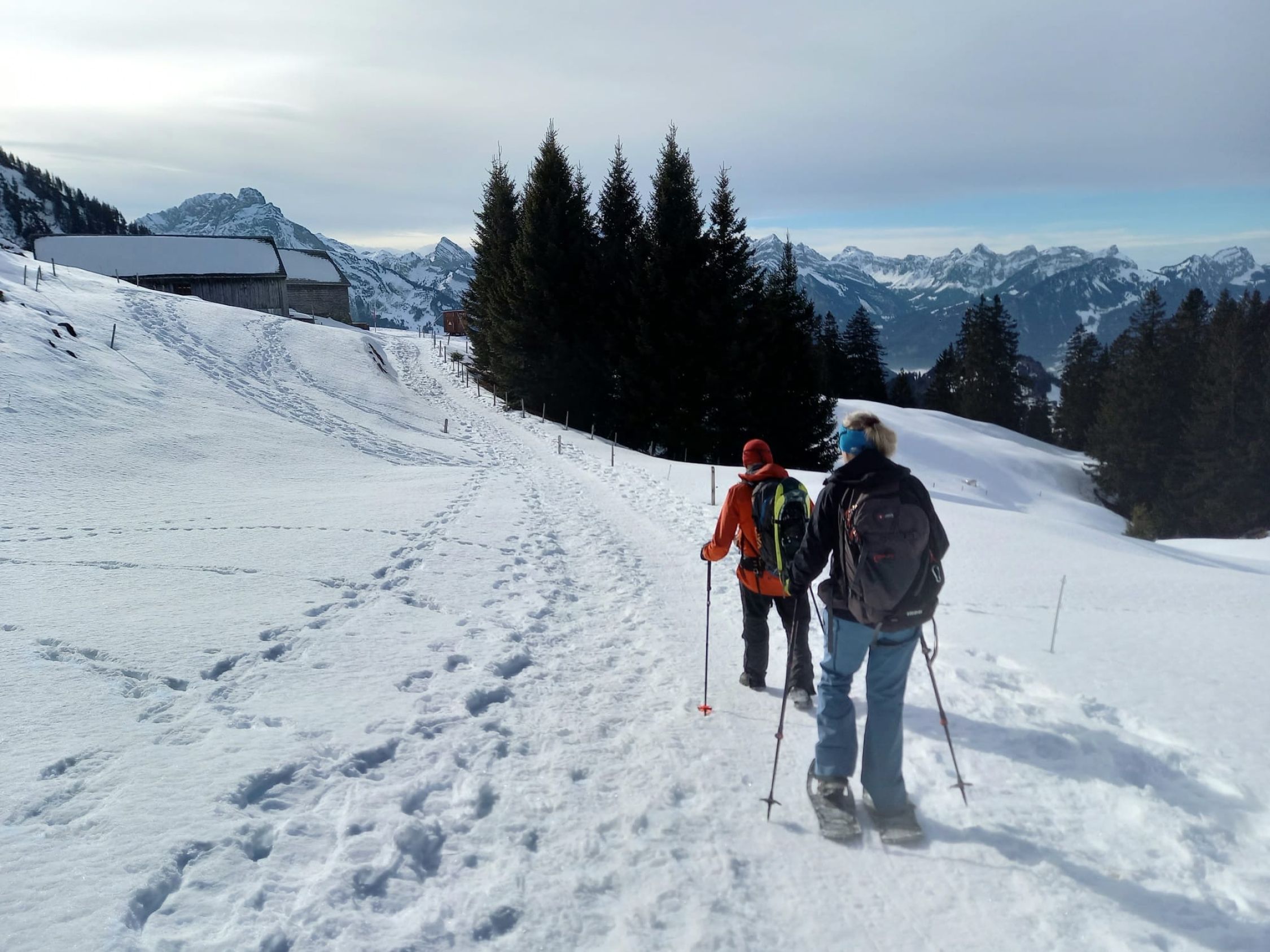 genug Schnee entlang des Trails. Der Weg war gut ausgetreten und hart. Im Abstieg, an der Ostseite des Flügespitzes, war der Schnee schon ziemlich weich.