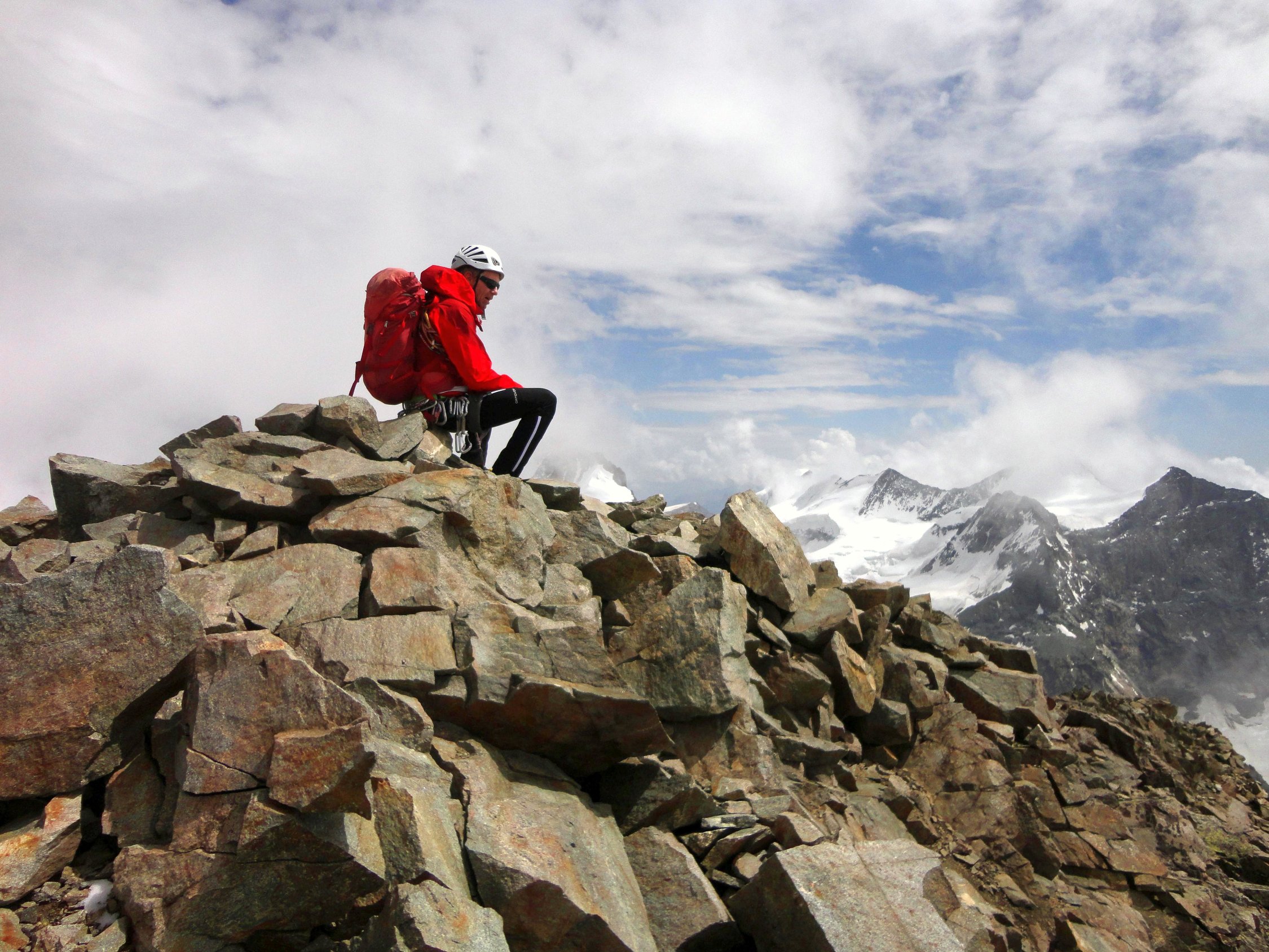 Wetter perfekt; warm, sonnig und trotz nachmittäglicher Quellwolken stabil, am Gipfel kalter Wind.
